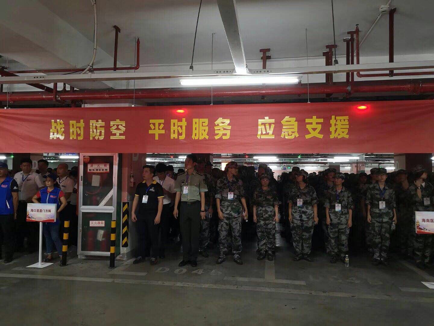 根据《2018年海口市龙华区“9.18”防空袭演练活动暨人防知识宣传工作方案》的要求精神,2018年9月18日上午 临床、口腔、药学等专业的军训新生200余人在保卫处尹国群同志和辅导员老师、军训教官的带领下,在海口市吾悦广场参加了2018年海口市龙华区政府举办的“9.18”防空袭演练活动。在活动现场全体师生听从指挥、队列整齐,步伐矫健,充分显示了我们海医人的亮丽形象,为此次活动增添了光彩。通过演练活动,使广大学生增强了国防观念和防空意识,实践中运用了所掌握的防空知识,合理有序的进行疏散逃生。提高了面临突发事件的心理素质和应对能力。