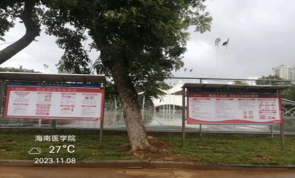 2023年11月8日,我处联合宣传部和学工处在校园内充分利用宣传栏、广播站和LED显示屏等宣传阵地,张贴悬挂消防标语、横幅、海报,利用LED显示屏滚动播放消防宣传内容及火灾案例警示视频,广泛宣传,营造宣传气氛,进一步树牢广大师生员工的消防防火意识,增强师生员工的日常消防知识,提高火险逃生自我保护能力。