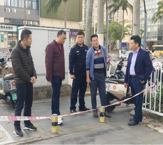 王基鸿处长带领全部处室人员和城西派出所干警徐愧检查了博谐门、和谐门、小西门、杏林苑南门、北门周边情况,此次联合检查总体情况良好,校园安全管理工作基本到位,但仍存在一些细节问题。针对发现的安全隐患,已当场提出整改意见,并要求相关部门限期整改。