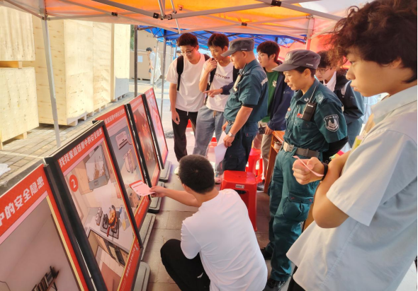11月7日起,保卫处联合党委宣传部,通过悬挂横幅标语、张贴宣传海报、利用LED屏滚动播放警示片与提示语等方式,在校园内广泛营造消防安全宣传氛围。同时,在人流密集的校道口及学生公寓区设置宣传点,组织安保人员向师生员工发放消防安全宣传册1000余份,面对面普及火灾预防、初期扑救及火场逃生知识,有效扩大了宣传覆盖面,使消防安全理念更加深入人心。
