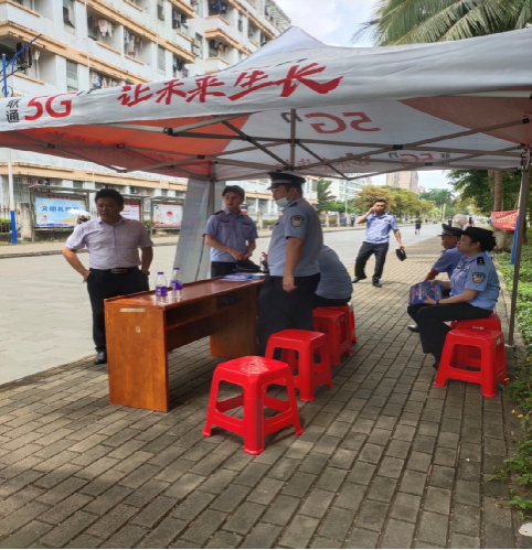 宣传活动中,保卫处全体人员及海口市公安局龙华分局、城西派出所民警共约30人向老师、学生发反诈宣传小册、学生公寓旁拉反诈宣传标语横幅,现场宣讲反诈宣传等。