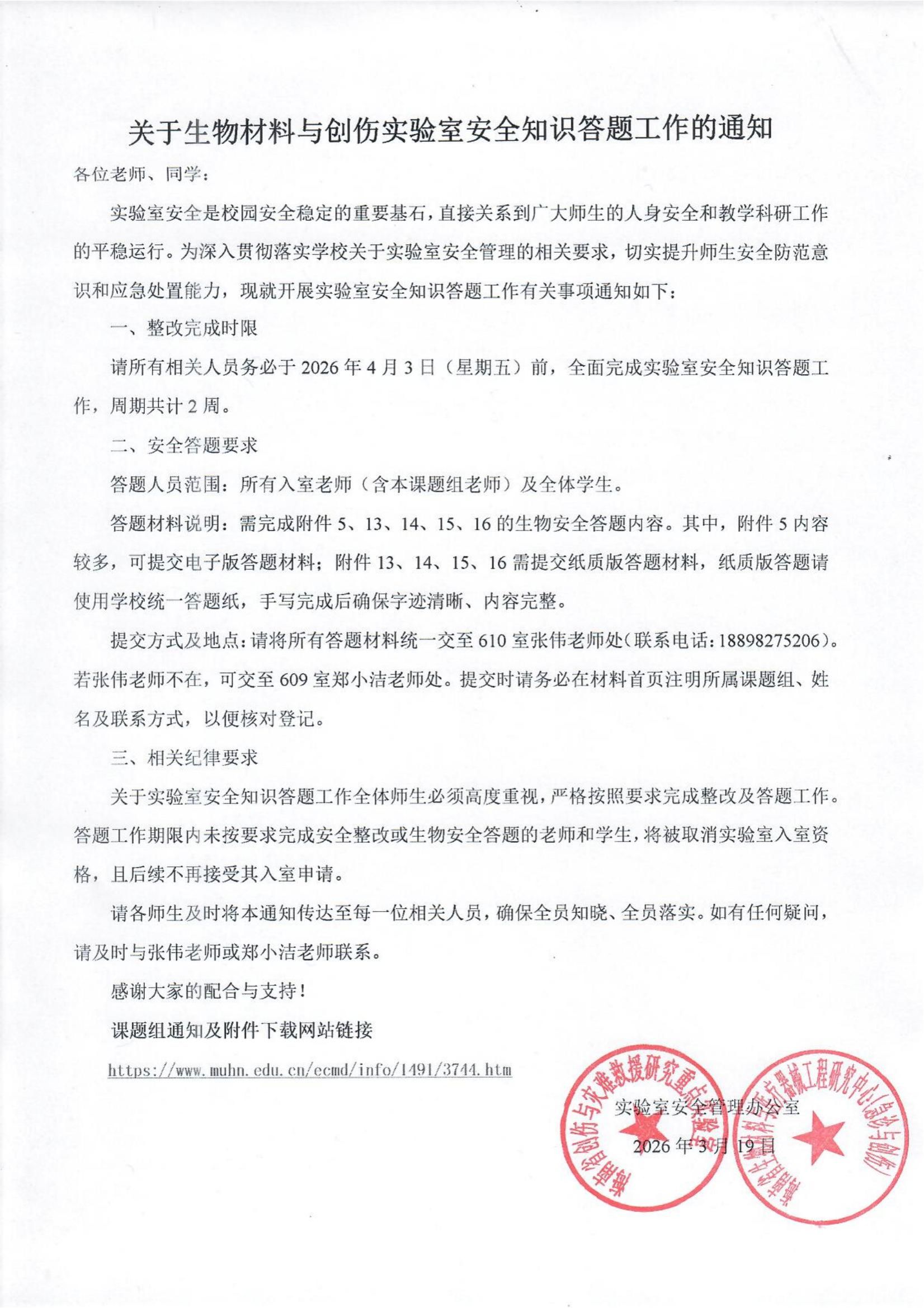 关于生物材料与创伤实验室安全知识答题工作的通知