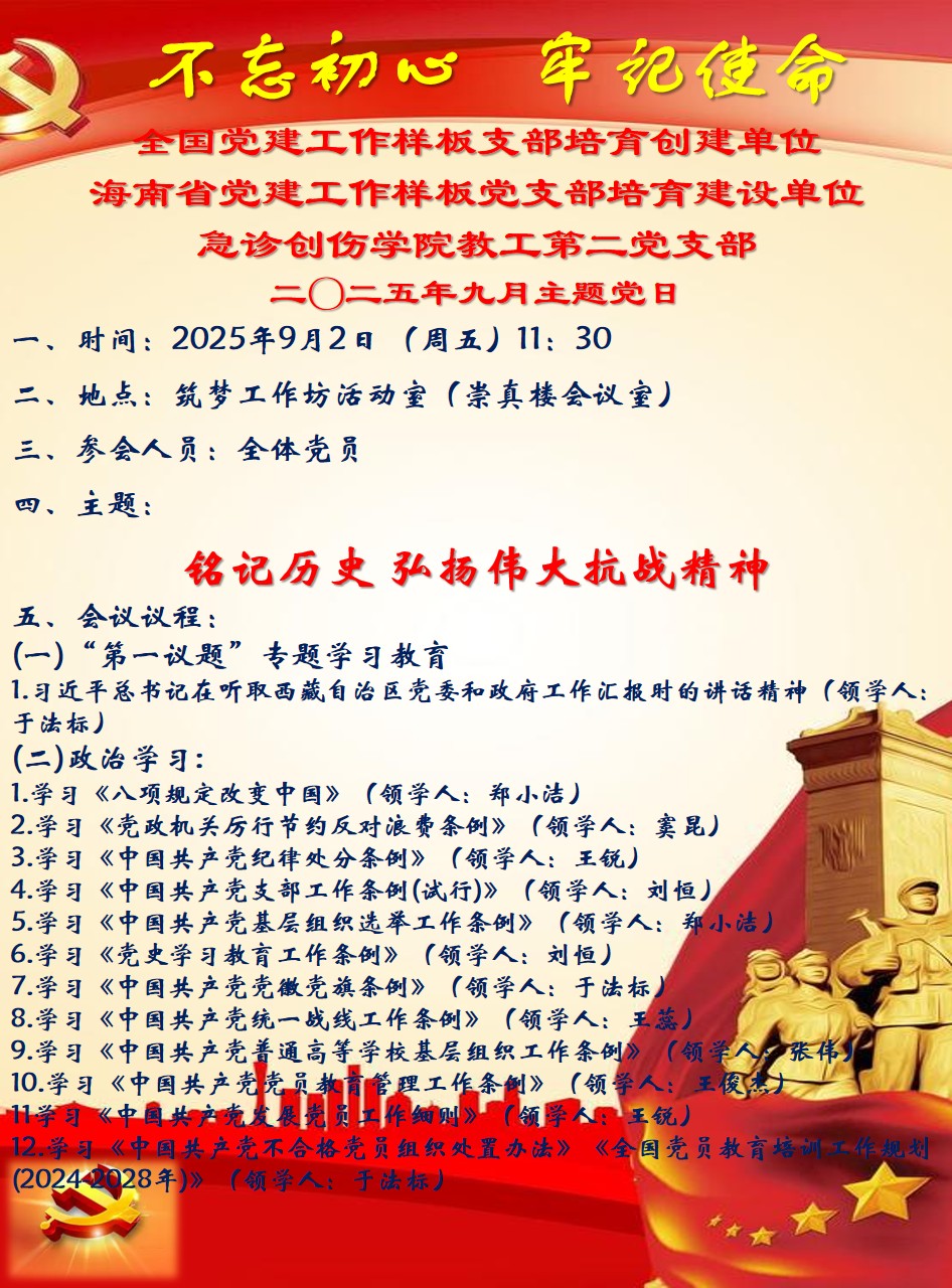 二〇二五年九月主题党日 铭记历史,弘扬伟大抗战精神