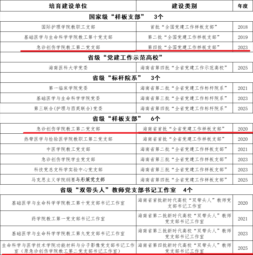 同时,我校第三联合(护理与西英联合)党委入选“全省党建工作标杆院系”培育建设单位,马克思主义学院纲要与形策党支部入选“全省党建工作样板支部”培育建设单位,生命科学与医学技术学院功能材料与分子影像党支部书记工作室(原急诊创伤学院教工第二党支部书记工作室)入选“双带头人”教师党支部书记工作室培育建设名单,标志着我校党建工作迈入全省高校第一方阵。