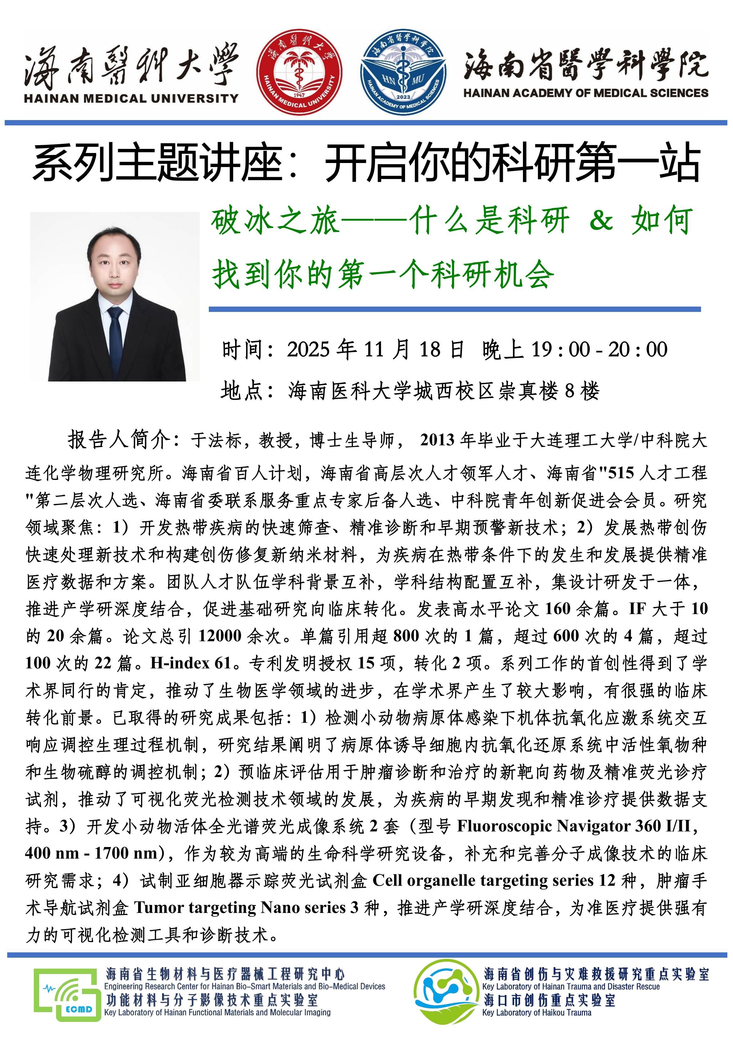 海南医科大学西英格兰学院科研启航计划系列主题讲座-开启你的科研第一站 破冰之旅——什么是科研 & 如何找到你的第一个科研机会-于法标