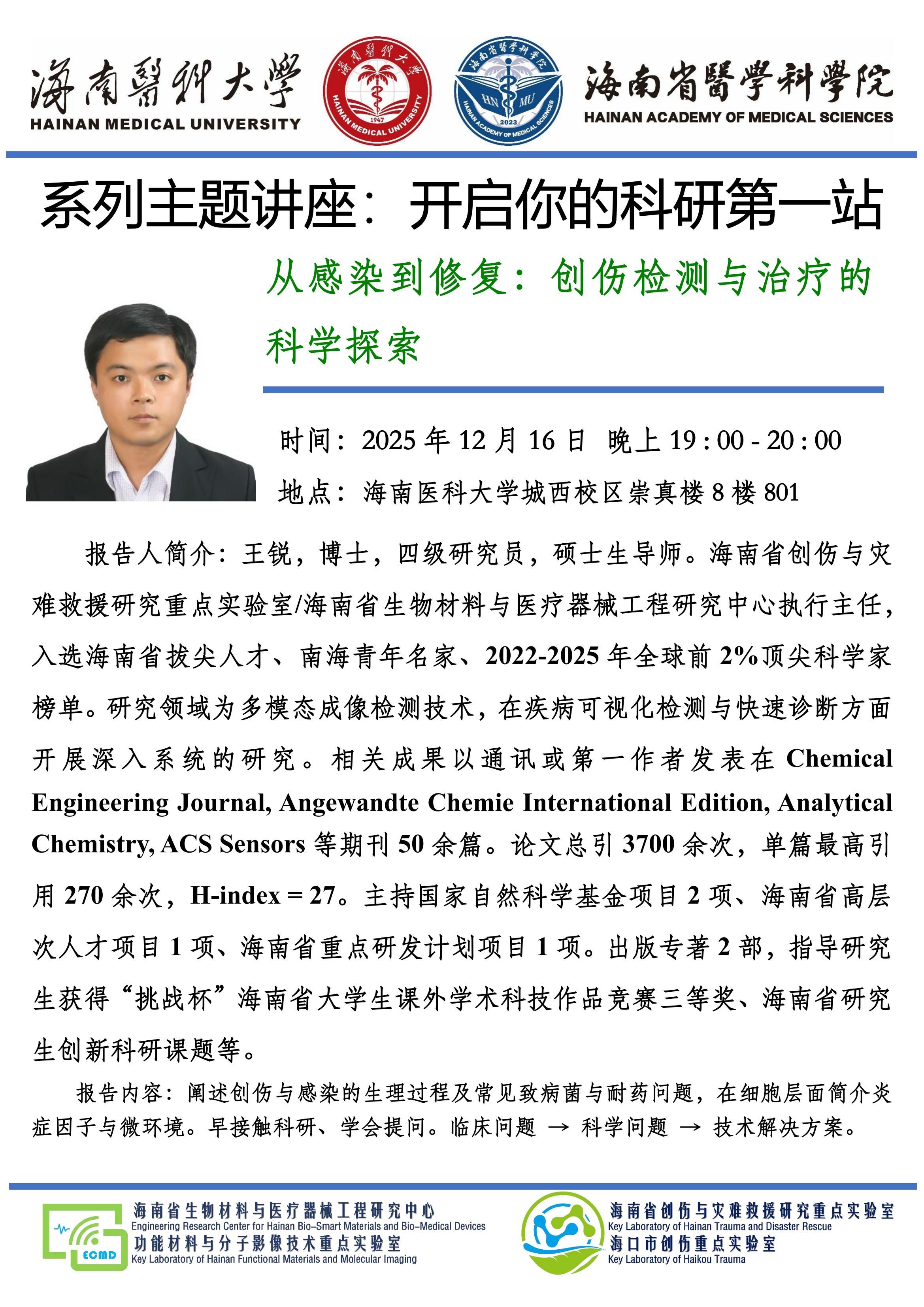 海南医科大学西英格兰学院科研启航计划系列主题讲座-开启你的科研第一站 从感染到修复-创伤检测与治疗的科学探索 王锐