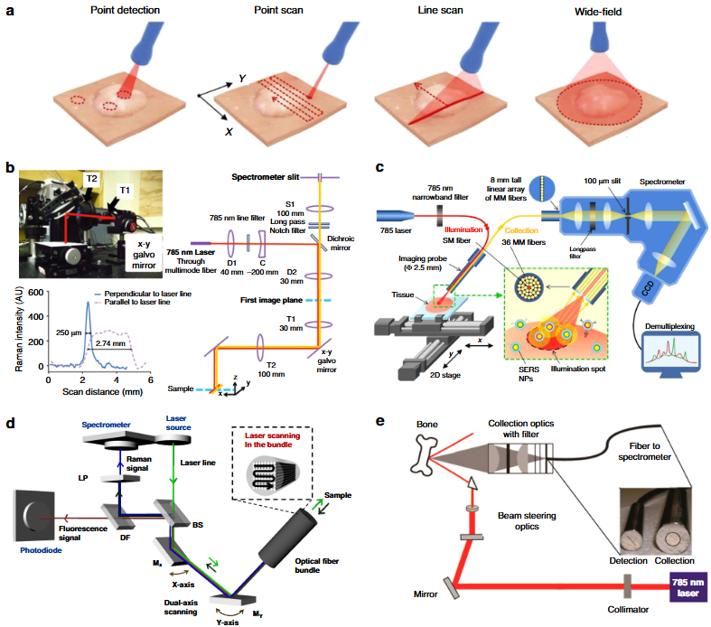 2.光纤基配置:包括内窥镜、手持探针(如 SpectroPen)、空间偏移拉曼光谱(SESORS),满足术中导航、深部组织检测等微创 / 无创场景需求。
