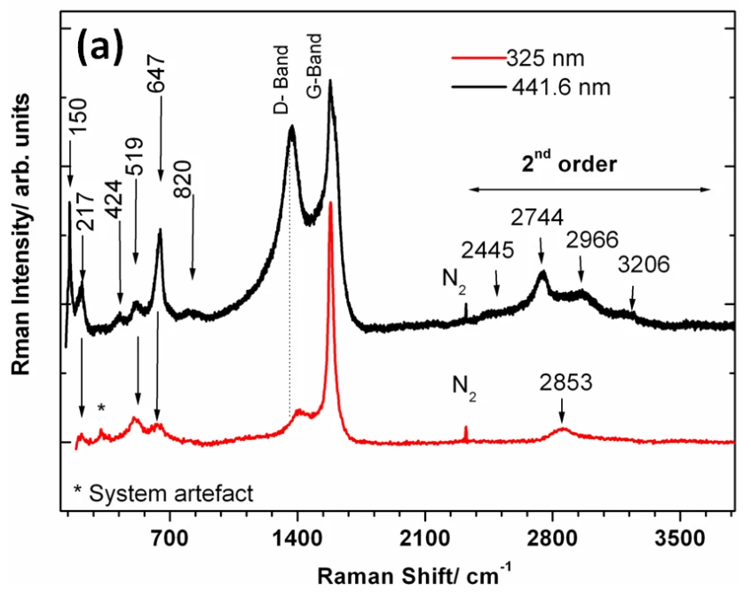 可以通过拉曼峰的宽度(半高宽FWHM)、对称性、分裂情况分析样品的结构有序性、缺陷程度或晶型。