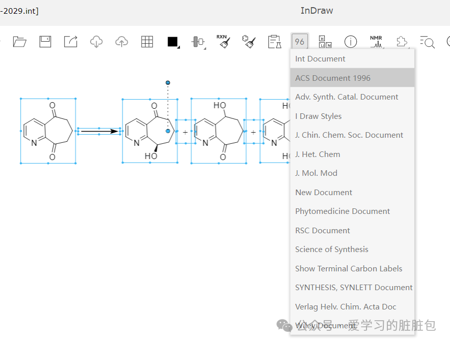 InDraw同样可以选择设置ACS1996期刊等常用期刊格式,虽不及ChemDraw多,但也覆盖大部分主流期刊。