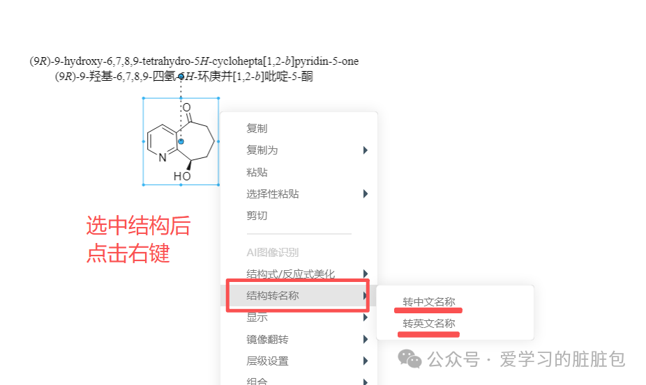 InDraw 的命名系统,能够直接依据化学结构生成对应的英文名称与中文名称。因为截至目前,在全球科研软件领域中,目前尚无任何一款软件能够实现化学结构生成中文名称的功能。核磁预测:绘制好化学结构后,框选整个结构或者需要被预测的特定部分 。然后在菜单栏中找到与核磁共振预测选项,选择需要预测的核磁即可,实测准确度还行,有一定的参考价值。