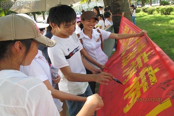 胸前红丝带在风中飘曳,同学们为“零艾滋”的目标奉献着自己的力量。相信通过宣传,大家一定能携手共进,团结努力,高举着理解与关爱的旗帜,将红丝带运动进行到底,向零艾滋迈进!