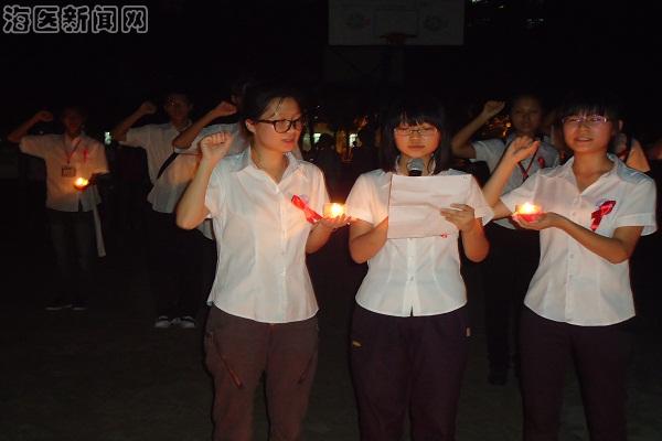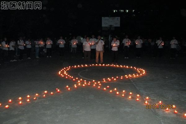 当天晚上7:30分,同学们在篮球场举行了艾滋病活动烛光祈祷仪式。团委王基鸿书记出席了此次活动。