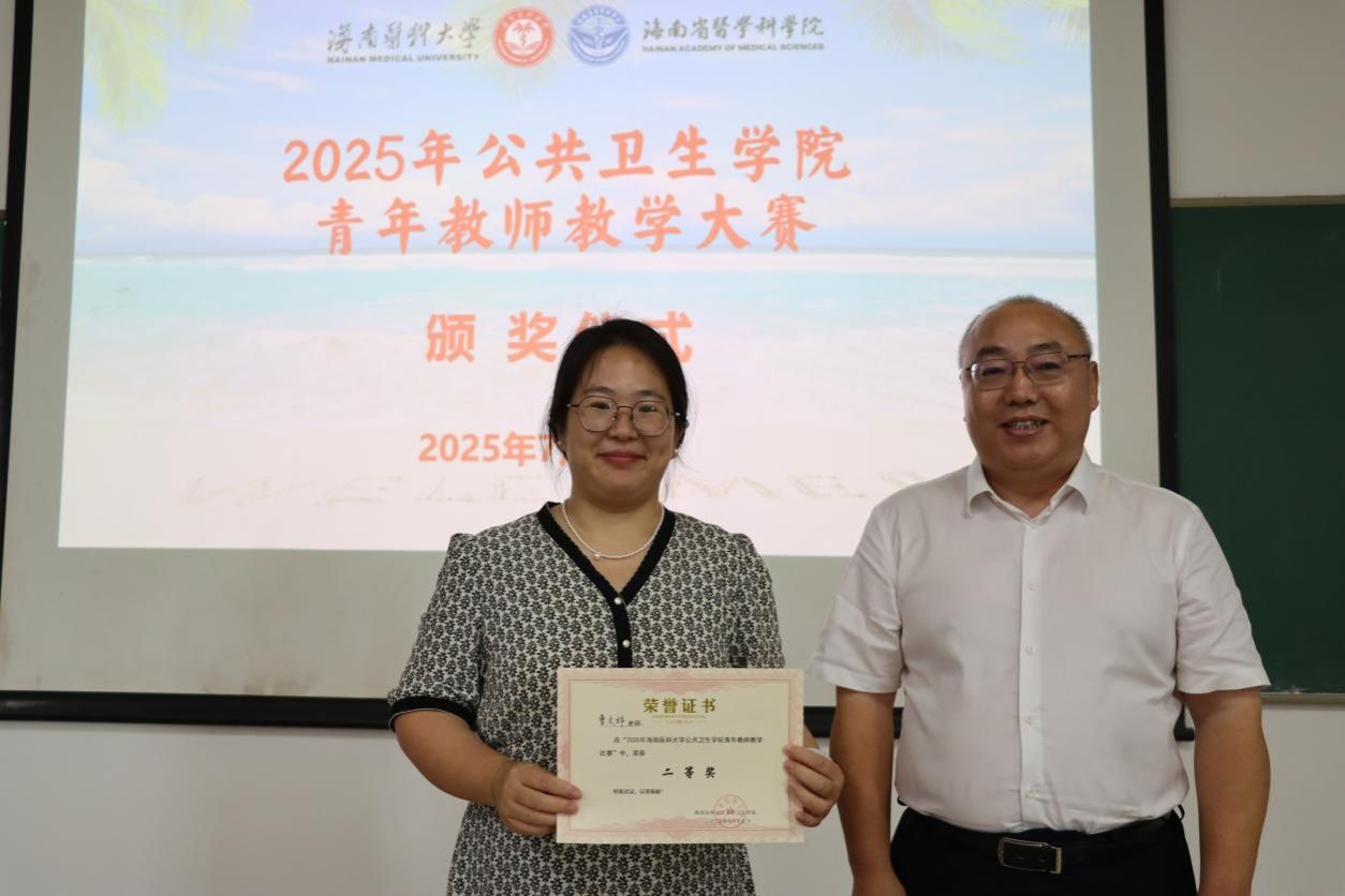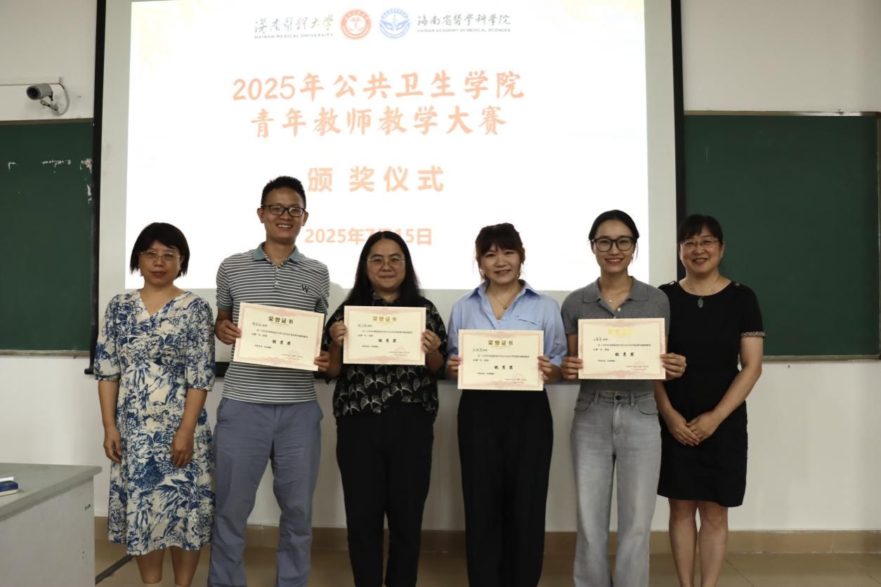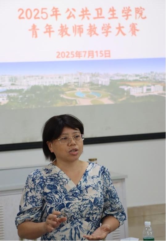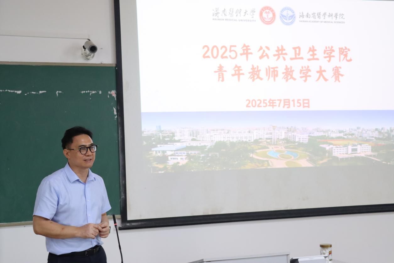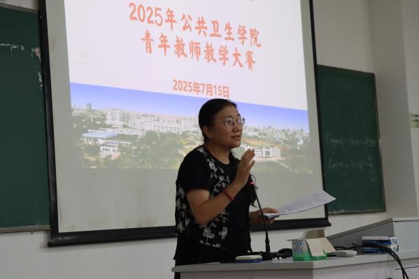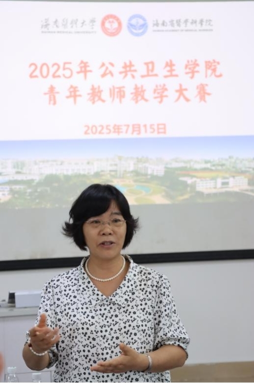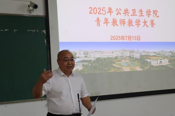 为提升青年教师教学水平,促进学习交流,2025年7月15日,海南医科大学公共卫生学院在第二教学楼402教室举办了青年教师教学比赛。本次教学大赛由公共卫生学院宁毅院长主持,校级督导专家梁平教授以及我院院级督导专家刘云儒教授、黄海溶教授、曹莉教授和龙文芳教授担任评委,学院7位青年教师参与现场比赛。