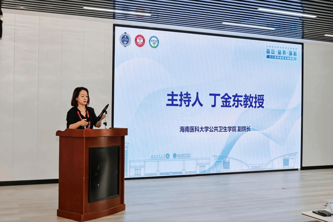 论坛在庄重而热烈的气氛中拉开帷幕。本次分论坛由公共卫生学院副院长丁金东主持。她隆重介绍了本次到会的嘉宾,分别是哈尔滨医科大学公共卫生学院副院长韩天澍教授、哈尔滨医科大学公共卫生学院副院长田懋一教授、海南省疾病预防控制中心传染病预防控制所靳妍所长、海南医科大学公共卫生学院院长杨国静教授。