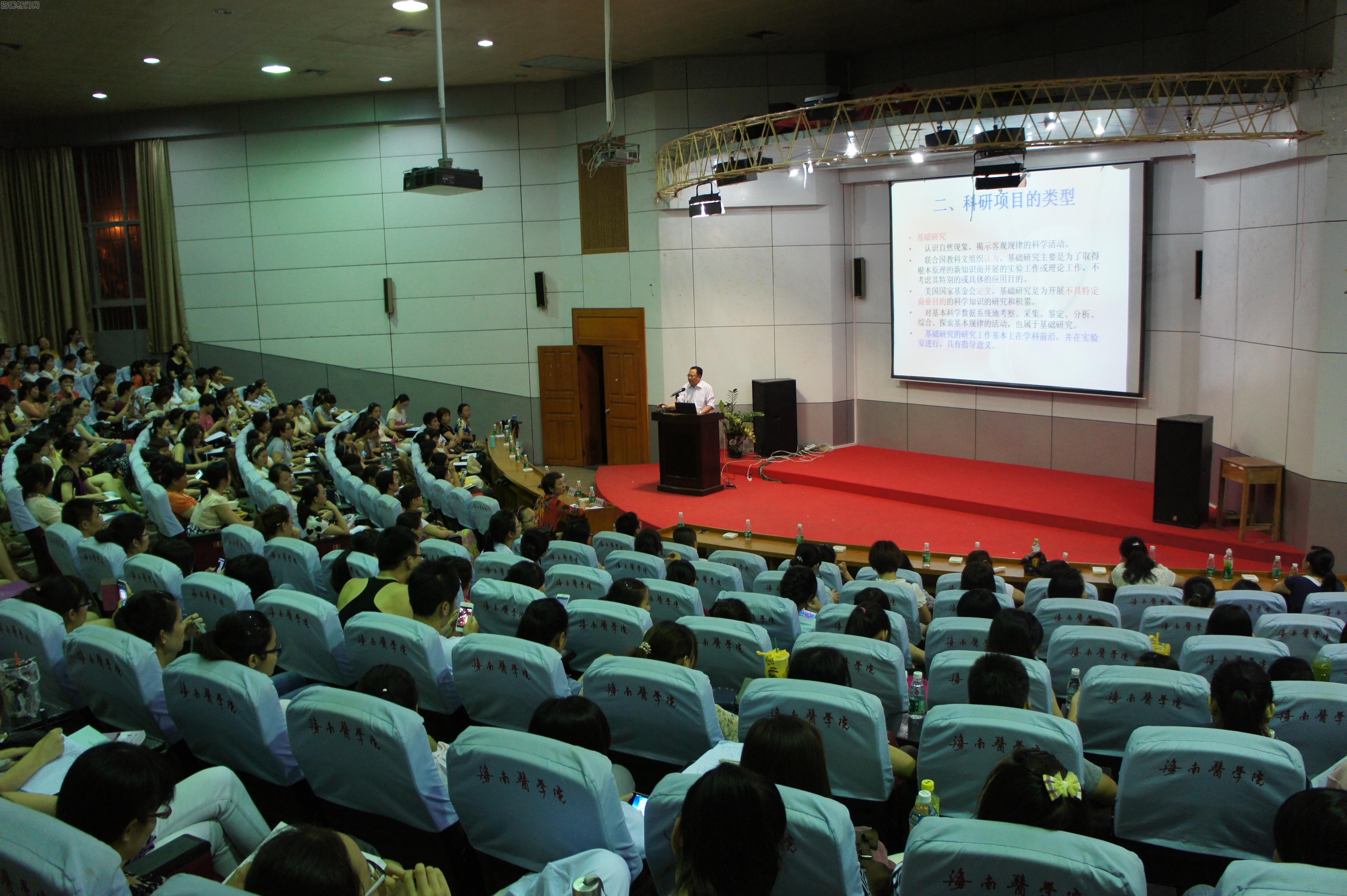 首先,由张彩虹院长向大家隆重介绍唐四元教授,并对唐教授的到来表示热烈的欢迎。接着,唐教授紧紧围绕“如何申报科研项目”的主题,从申报科研项目的渠道、科研项目的类型、项目申请前的准备工作、申请书写作注意点、申请项目未受资助的原因分析、项目申请书的撰写共六个方面为全体师生进行了详细的线性梳理,并展现实例来说明问题。唐教授以清晰的思路、幽默的语言和科学严谨的精神深深的吸引着在场的每一位听众。讲座后,教师和学生纷纷提问,他一一作了详细的解答,并给予我校师生科研能力的肯定与信心。最后,由张院长为本场讲座作了总结,并寄予护理师生们殷切的希望,希望师生们能将所学运用到实际的科研工作中,共同努力提高护理科研水平。