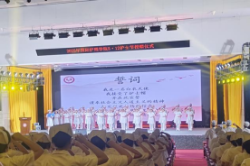 授帽仪式结束,国际护理学院蔡小霞副院长带领全体学生进行宣誓,在一声声整齐的宣誓中,看到了护理学子们逐渐坚定的眼神,让他们感受到了责任和使命,更加明确了未来的职业方向和目标。