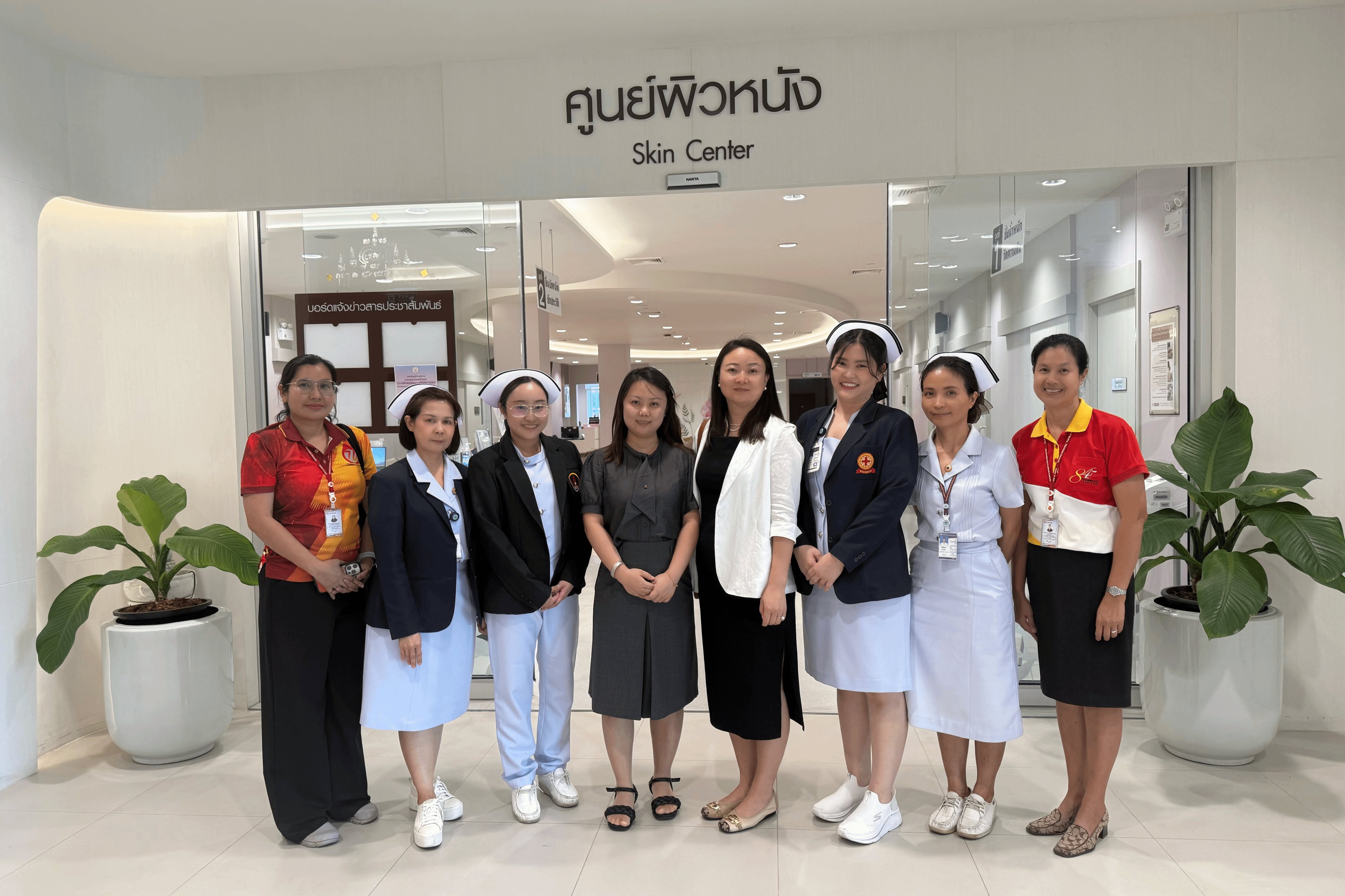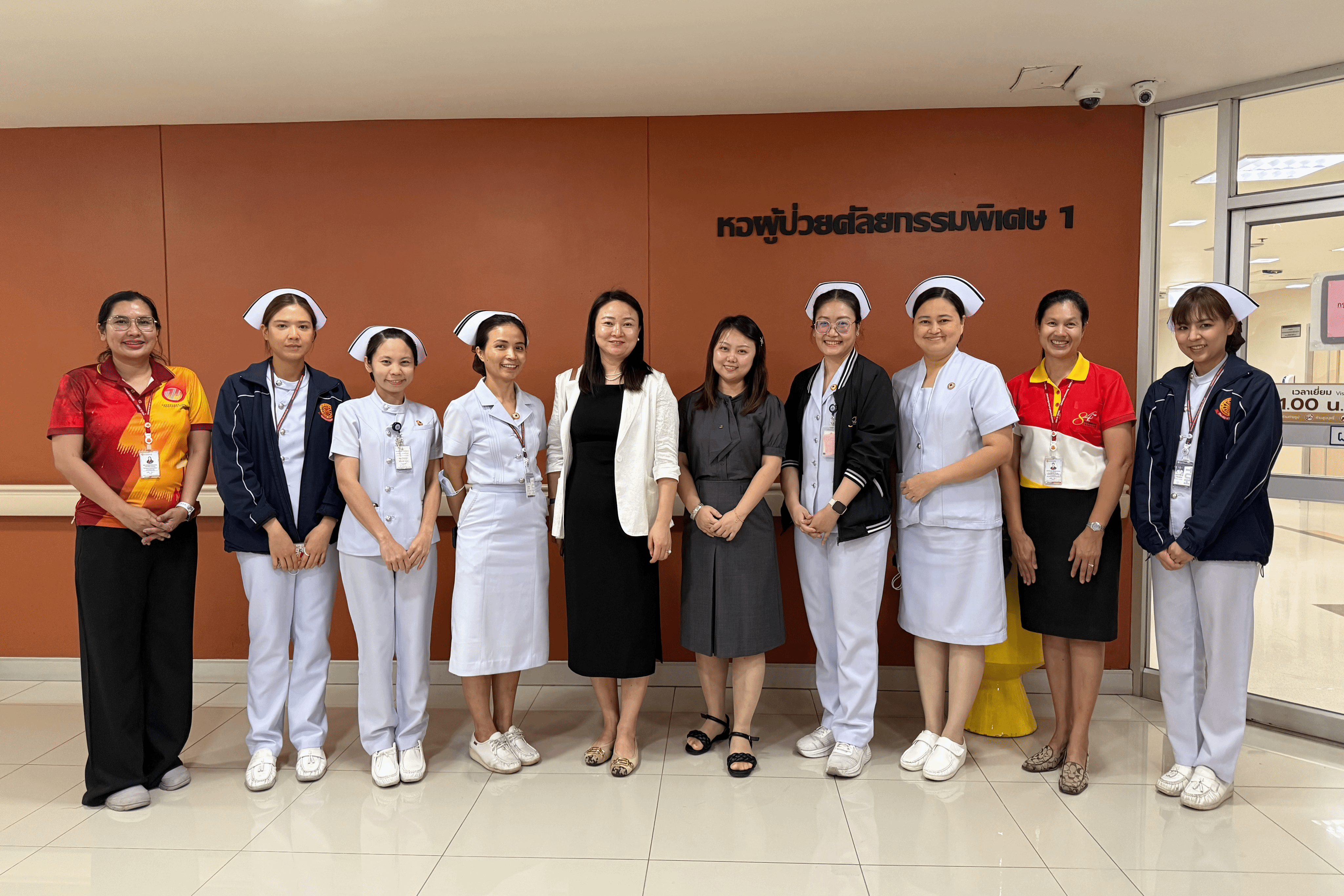 6月27日上午,在护理学院助理院长Natthananporn Sanguanklin副教授的陪同下,访问团前往Thammasat University附属医院进行重点参观。此次参观涵盖了智能血液透析中心(Smart Hemodialysis Center)、手术护理部门(Operative Care Unit)、皮肤专科门诊(Skin Clinic)以及儿童与青少年发展中心(Child and Adolescent Development Unit)等多个特色临床科室,两位老师全面了解泰方在智能护理、专科建设及临床教学等方面的先进经验与做法。