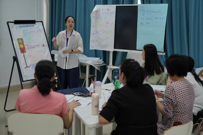 本次FDW工作坊严格遵循“做中学”的核心理念,采用“示范-演练-反馈-反思”的闭环培训模式,通过三轮精心设计的微型教学循环,系统培养学员的引导能力。在资深培训师的指导下,学员们深度体验了FDW标准流程,每个循环包含10分钟迷你教学演示、结构化"“三明治”反馈法、引导员角色模拟及教学反思日志撰写等关键环节。并通过“参与式学习工作坊”、“反馈海报设计”等主题模块,帮助学员掌握ORID焦点讨论法等专业工具,深入理解“以学员为中心”的引导哲学。通过每日“引导实验室”的沉浸式训练,学员们将BOPPPS模型与引导技术有机融合,显著提升了设计互动学习体验、引导教学对话和促进团队反思的能力,既掌握了 “创建安全包容的学习场域、激发内生学习动力、促进教学共同体协同进化” FDW的三大核心价值,又培养了基于情境的灵活引导智慧,使学员在“做中悟”的过程中成长为合格的引导员。