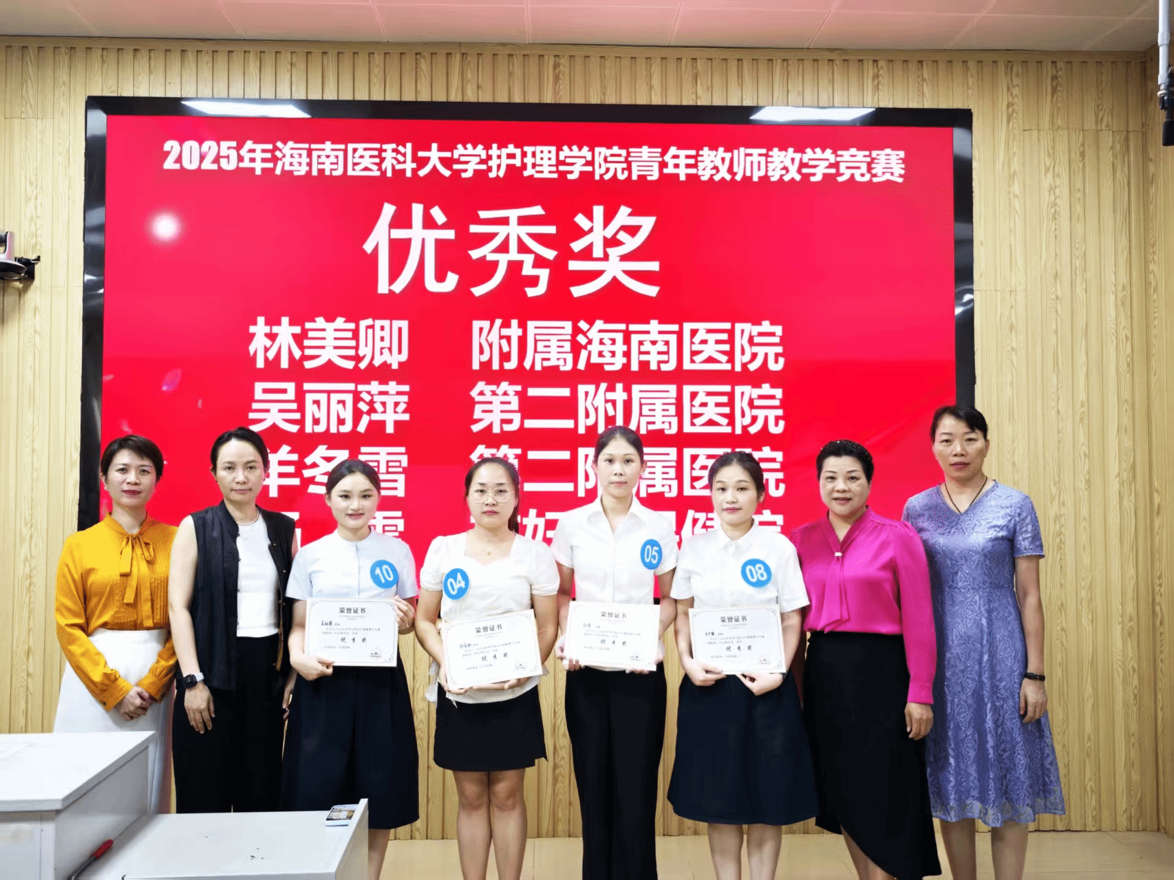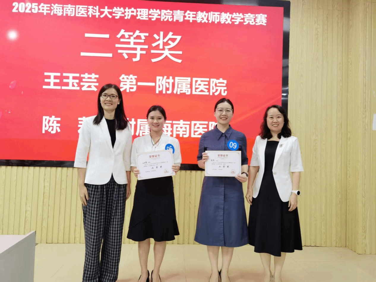 经过激烈角逐和公正评审,最终评选出各类奖项。优秀奖获得者为:海南医科大学附属海南医院林美卿、海南医科大学第二附属医院羊冬雪、海南医科大学第二附属医院吴丽萍、海口市妇幼保健院杨雪;三等奖获得者为:海南医科大学第一附属医院陈应尧、海南医科大学第二附属医院纪乔雨、海南医科大学附属海南医院魏英;二等奖获得者为:海南医科大学第一附属医院王玉芸、海南医科大学附属海南医院陈莉;一等奖获得者为:海南医科大学第一附属医院洪蕾。与会领导和评委为获奖教师颁发证书并表示祝贺。