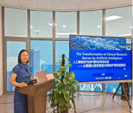 海南医科大学护理学院副院长郭洪花主持并推动了会议的深度讨论。江苏省肿瘤医院护理部主任张柳柳从研究护士的角度谈如何保护受试者的权益,强调了科研伦理在护理研究中的重要性。白芳副主委进行了关于“人工智能重塑研究护士——从数据采集到临床决策转型之路”的精彩分享,分析了AI在临床科研中的创新应用,强调了研究护士在精准科研决策中的核心作用。