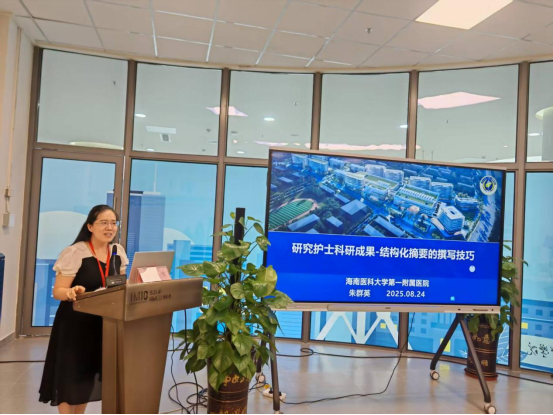 海南医科大学第一附属医院心血管内科二病区护士长朱群英分享了“科研成果怎么‘打包’? —— 研究护士的小成果转化起步指南”。