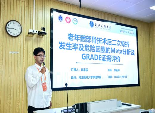 智慧护理是本次分论坛的一大亮点,蚌埠医科大学的张桃桃构建了基于机器学习的老年人衰弱风险预测模型,河北医科大学的任家辰运用系统评价与GRADE证据体系分析了老年髋部骨折风险,河南医药大学的杨玮晔则探讨了童年不良经历对成年健康的远期影响并构建预测模型,充分显示了数智技术与循证方法在推动护理科研精细化、科学化发展中的强大动能。石秀秀老师对本组学生的研究成果表示充分认可,建议适当补充亚组分析与外部验证,以及提及数据库研究需注意指标控制及期刊发表趋势。