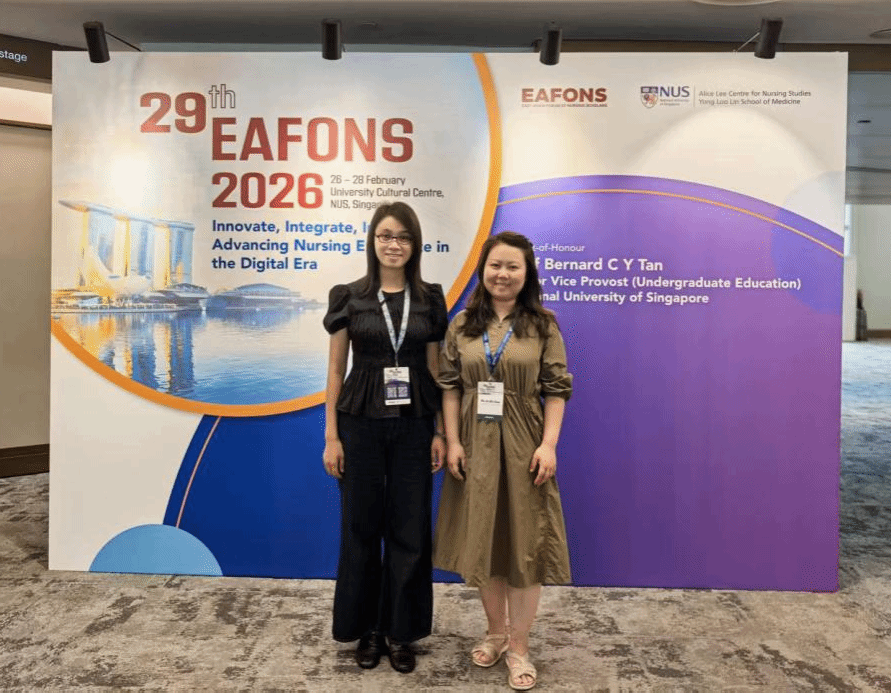 2026年2月26日至28日,第29届东亚护理学者论坛(29th East Asian Forum of Nursing Scholars, EAFONS 2026)在新加坡国立大学隆重举行。本届论坛以“创新、融合、激励:在数字时代推进护理卓越”为主题,吸引了来自40多个国家和地区的1800余名护理研究、教育工作者及政策制定者等参会,共同探讨护理学科发展的前沿议题。海南医科大学护理学院健康与慢性病管理团队蒋新军、靳志超两位老师参加会议并与国际同行开展交流,展示了我院在慢性病管理与护理教育领域的研究进展。