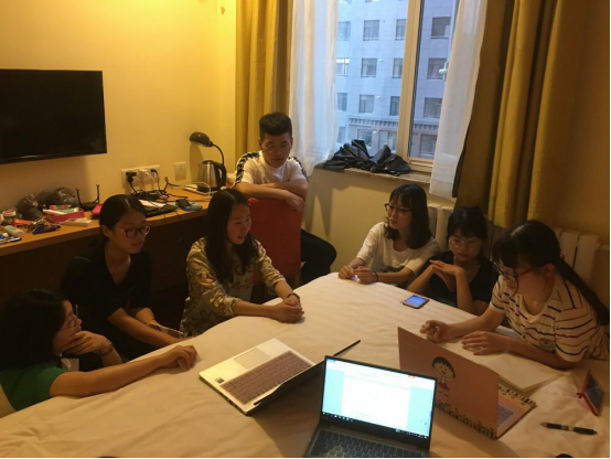 此外,除了接受来自各高校教授的授课外,代表们还通过课下与其他高校的同学们互相学习与沟通,针对老师给予的主题,我院代表们与来自南方医科大学、湖南中医药大学的同学们一起商讨如何进行汇报,在这个过程中,他们互相学习、互相听取意见,最后以情景剧表演与ppt呈现相结合的形式汇报,代表们很享受与大家一起编剧本、扮演角色表演的过程。
