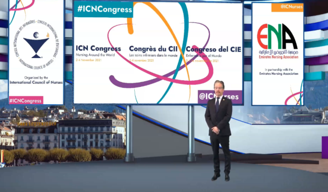 受到COVID-19全球疫情影响,原定于在阿联酋首都阿布扎比(Abu Dhabi)举行的ICN国际护理大会,延期至2021年11月通过线上举行,这是ICN国际护理大会有史以来第一次以虚拟方式举行。来自世界各国的护理领导人肯定了在疫情期间全球护士做出的贡献,并呼吁完善医疗体系,加强对护理行业的投资和对护士的关心。