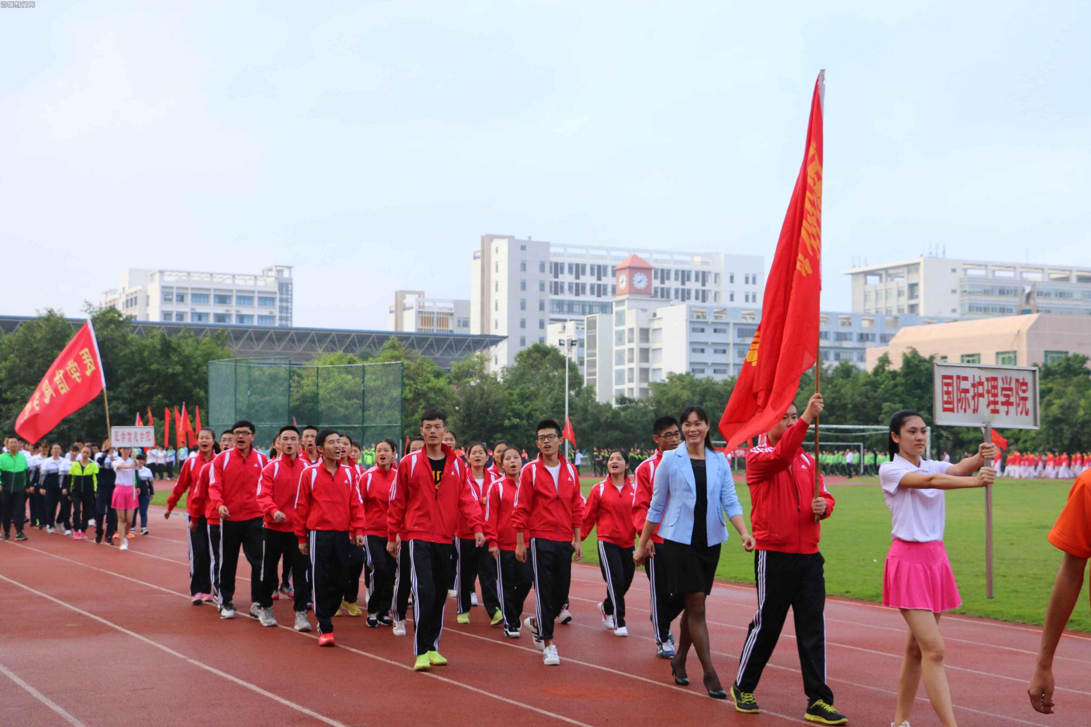 在开幕式上, 国际护理学院的运动健儿们穿越运动会场,展现了青春飞扬的风貌。