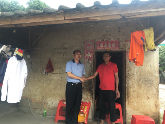农副产品供应基地,与他们建立了密切合作,推进农村经济建设。韩书记特别了解了周德平一家的情况,周家靠最低生活保障过日子,家里还有一位老母亲,两个儿子外出打工,家里一贫如洗,唯一的电器只有一台老式电视机。韩书记和老师们向贫困户宣传相关扶贫政策措施,鼓励他们坚定信念,克服困难,积极乐观生活,通过政府的扶持引导和自身勤劳奋进,争取早日脱贫。同时,我院书记给番豆村和成栋村分别送去了洗衣粉,大米、食用油、等生活用品,让贫困户真切感受到党和政府的关心和温暖。