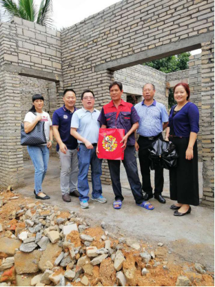 2018年9月18日,中秋佳节将至,我院党委书记韩祥畴和教职工支部书记蔡小霞老师一起代表支部带着慰问品探望成栋村的周德平一家,他家的新房子正在建设当中,当新房子建成之后,周德平一家也就正式脱贫了。韩书记和蔡老师还一起走访了其他贫困农户,诉说家常,倾听他们的心里话,并宣传党的精准扶贫政策,了解他们对前段扶贫工作的满意程度。针对贫困户家庭实际,韩书记和蔡老师表示可进一步引导他们通过种植和养殖增收,逐步实现脱贫致富。