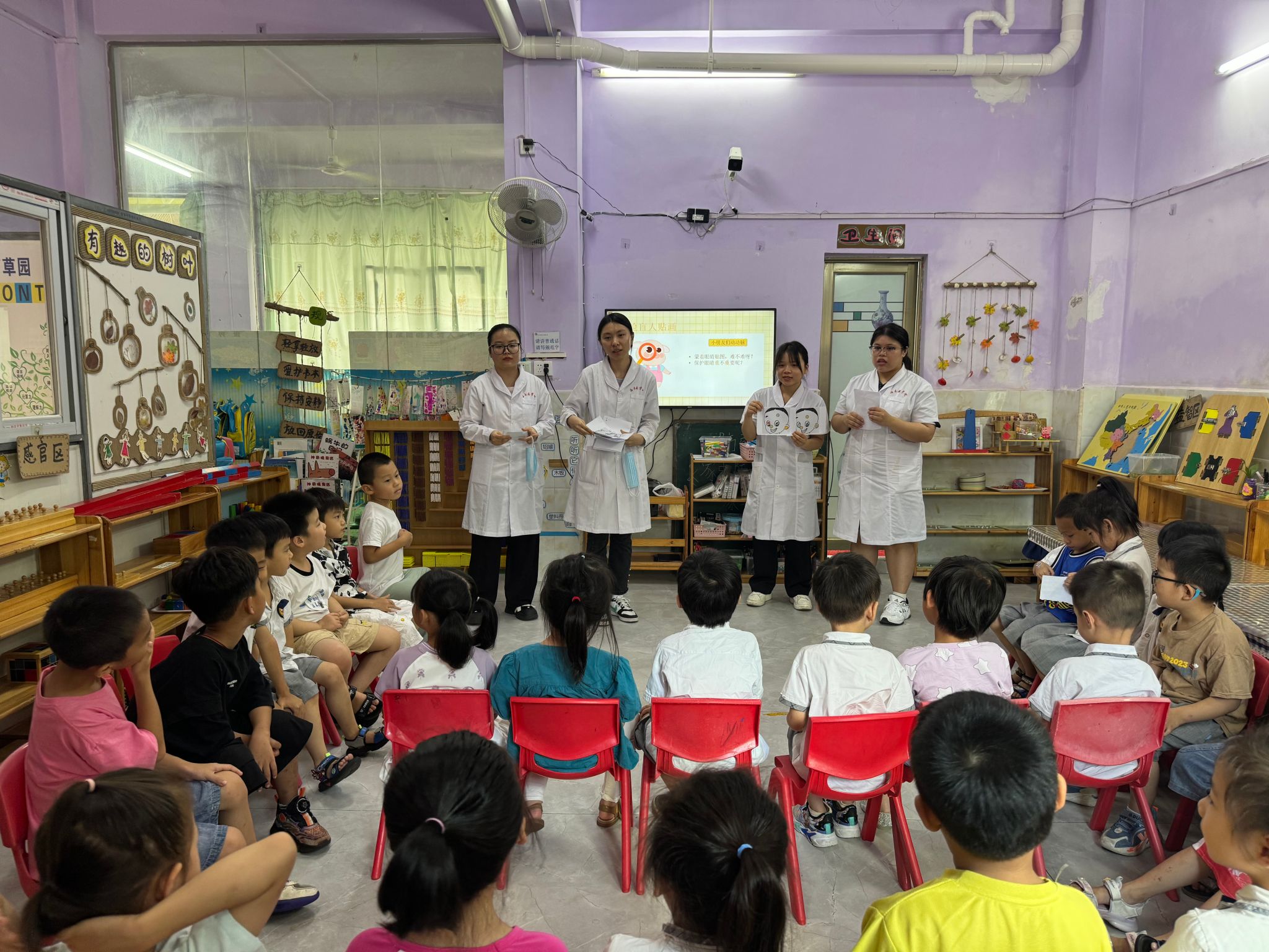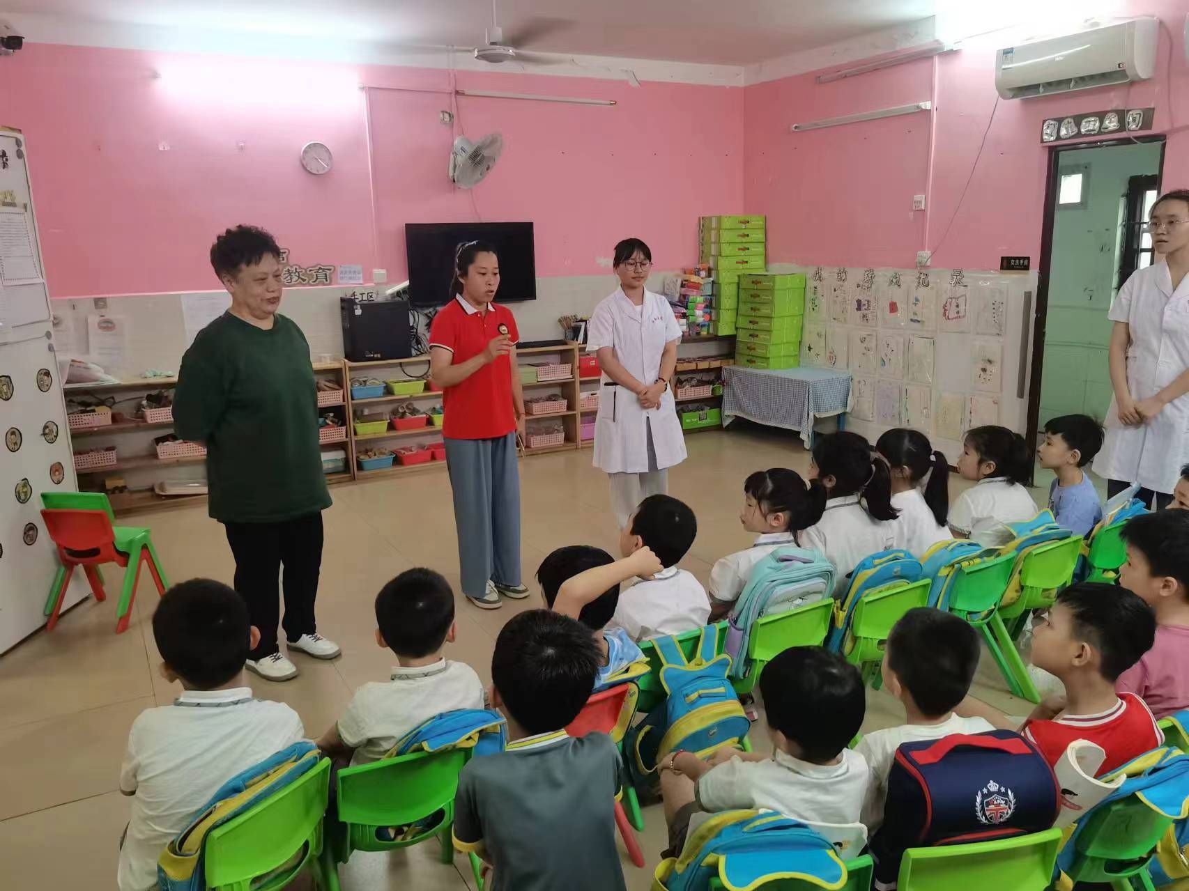 这一天,也是我们支部张宏玉同志退休前的一天,她积极发挥党员的带头作用,利用自身专业知识,给幼儿园的教师和学生科普健康知识,以“党建+教学科研”模式,促进党建与业务融合。