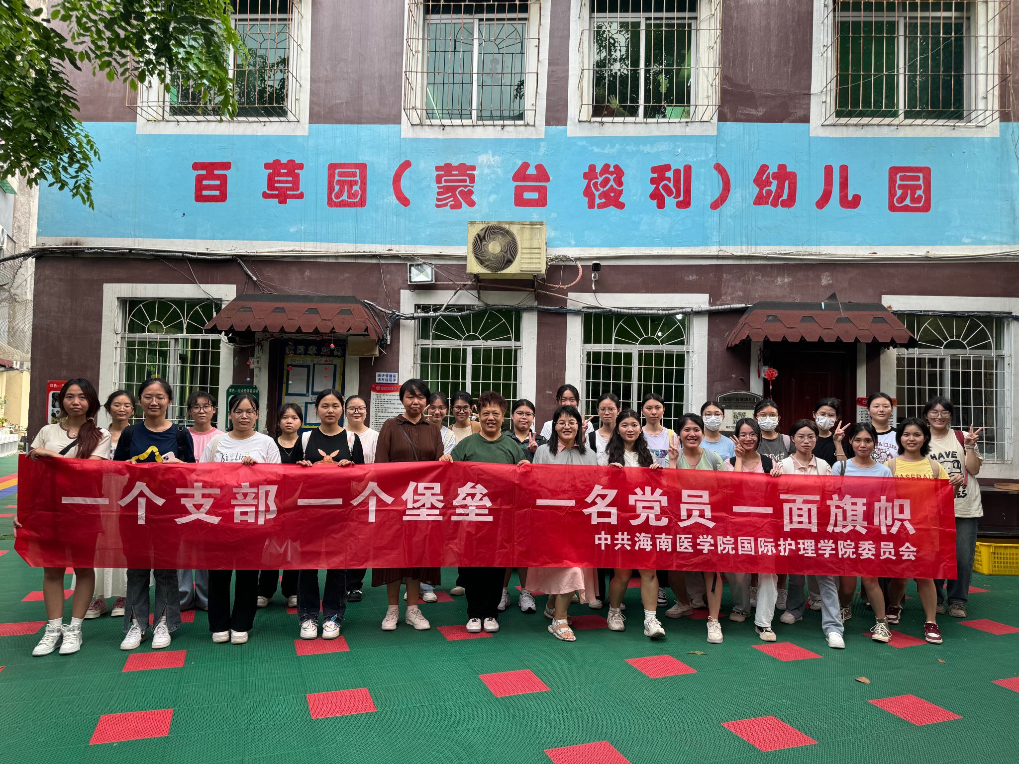 国际护理学院教工第二党支部走进海口市百草园幼儿园以 “温情共传递 志愿暖人心”为主题开展主题党日活动。党员教师们面对面地指导小朋友,通过讲故事、唱儿歌、观看视屏、示范教学等形式引导小朋友正确洗手、刷牙、做眼保健操等,帮助孩子们形成良好的的生活习惯,还实现了自身价值与服务社会相统一。
