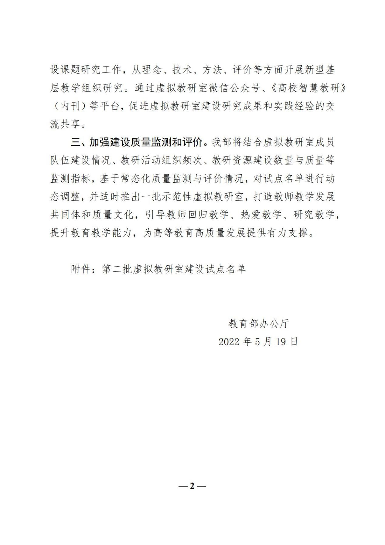为贯彻落实“十四五”教育发展规划有关部署,加快虚拟教研室建设,教育部于2022年开展了虚拟教研室建设试点申报与评审工作,经各地各高校和教育部高等学校教学指导委员会推荐、专家综合评议,我校张彩虹教授牵头的“沿海区域护理学专业虚拟教研室”成功获批第二批虚拟教研室建设点【《教育部办公厅关于公布第二批虚拟教研室建设试点名单的通知》(教高厅函〔2022〕13号)】。