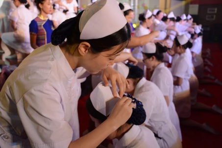 2018年5月12日晚19:00,由国际护理学院主办的2017级护理本科生授帽仪式暨5·12国际护士节晚会在国际报告厅隆重举行,莅临本次晚会的领导有 学生工作处处长邝家旺、党委宣传部部长王身坚、 团委书记曾梅、管理处处长郑武平、国际护理学院党委书记韩祥畴、国际护理学院院长张彩虹、国际护理学院副院长王涛、 招生与就业指导处科长肖垟、以及 第一、第二附属医院护理部的蒙莉萍主任、王丹心、徐立、王根妹副主任和大科护士长及护士长们。同时,参与本次晚会的还有护理专业15级、16级、17级全体同学们。
