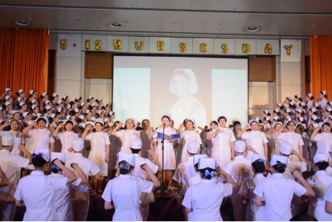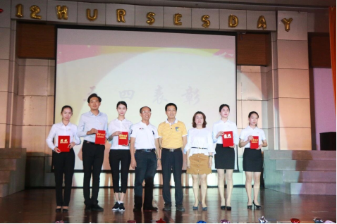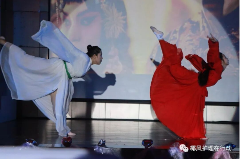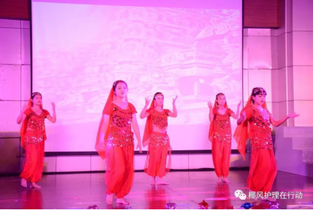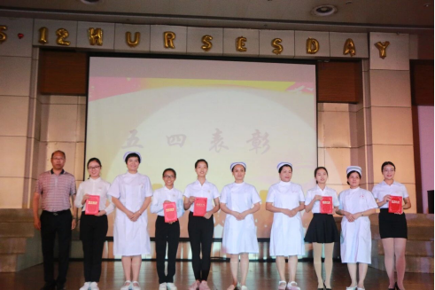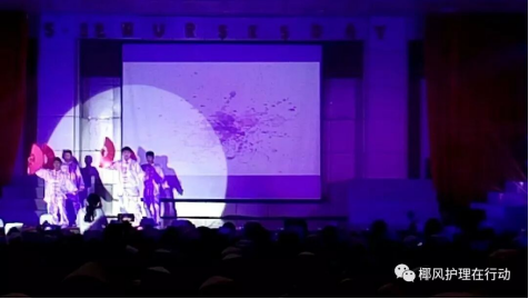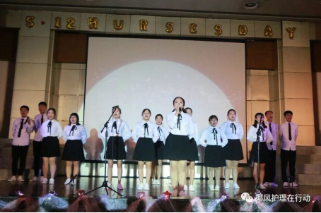 紧接着,进行大会第二项:5·12国际护士节晚会,同学们带来了自己精心准备的节目,展示护理人员的风采,给大家带来一场视听盛宴。在节目初始,进行了光荣的五四表彰仪式,仪式上表彰了国际护理学院过去一年中荣获国家级、省级奖项的同学,如戈旭伟、陈澳、于冬雪、韦青梅4名同学在“第二届全国护理专业本科临床技能大赛”中荣获二等奖,希望同学们向他们学习,不断努力,再创佳绩;晚会节目丰富多样,有爵士舞《因为红》和热舞《dance for you》的动感十足,激情澎湃。也有古典舞《项羽虞姬》和《芊芊》的婀娜多姿,优雅柔美。也有清新可爱,魔性洗脑的《海草舞》,更有异国风情的印度舞《神秘印度》带给观众视觉上的美妙体验。值得一提的是今晚的亮点节目《变脸》,由民间艺人带给大家川剧中经典的变脸和口吞火球,使全场沸腾,带入高潮。与此同时,有太极舞《舞扇》给大家展示了刚柔并进的中华武术太极的魅力;欣赏完舞蹈和杂技,再来感受声音的魅力,有对唱《最美的太阳》和独唱《像梦一样自由》带给大家蓬勃的朝气,也有动听优美,温柔似水的《独家记忆》浸入灵魂,洁净内心。更有合唱《虫儿飞》和乐队热歌《无谓的自由》呈现给大家高超的声音艺术和鼓舞人心的听觉享受;也有更加精彩的小品《爱的教育》表达了我们对于老师的尊敬和感谢,感动于老师的苦苦付出,与此同时,《生如夏花》优美的英文朗诵带领我们重温泰戈尔的《飞鸟集》中那延绵的柔情。最后,当歌声在国际报告厅的大厅中回荡,直至慢慢消失时,本次5·12国际护士节晚会也画上了完美的句号。