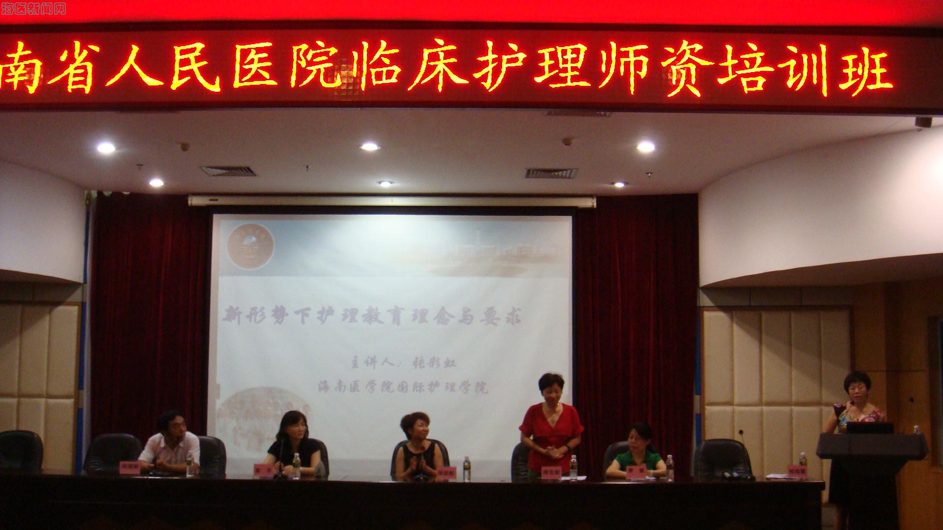7月7日至11日,国际护理学院在学校的大力支持下,分别在海南省人民医院信息楼多功能报告厅和 附属医院学生公寓4楼会议室成功举办了2期临床护理师资培训班,培训现场座无虚席,掌声不断。国际护理学院作为培训班的主办方,由张彩虹院长带队,阎国钢副院长、王海花、蔡小霞、王涛等资深教师一行5人,精选了现代教学理念、PBL教学法、护理理论及实践教学、教学查房及课件制作、学员试讲等培训内容,面向200多名来自海南省人民医院、 附属医院、海南省农垦总局医院、海南省干部疗养院、海南省及海口市妇幼保健院等临床护理师资,展开了两场别开生面的理论与实践紧密结合的培训。省人民医院护理部及附属医院护理部作为培训班的协办方,积极配合主办方做好培训的准备工作,使得本次临床护理师资培训班取得圆满成功。