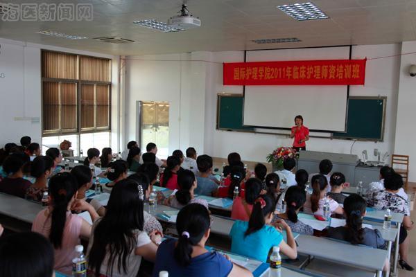 8月23日上午,由我校国际护理学院主办的“2011年临床护理师资培训班”开班典礼在第二教学楼401教室举行。学校党委副书记吕传柱、海南师范大学教育科学学院副院长任仕君、教务部主任林英姿、附属医院党委副书记陈少兴、国际护理学院党政领导以及120多位来自各级教学医院、医疗单位的学员参加开班典礼。典礼由国际护理学院副院长张彩虹主持。
