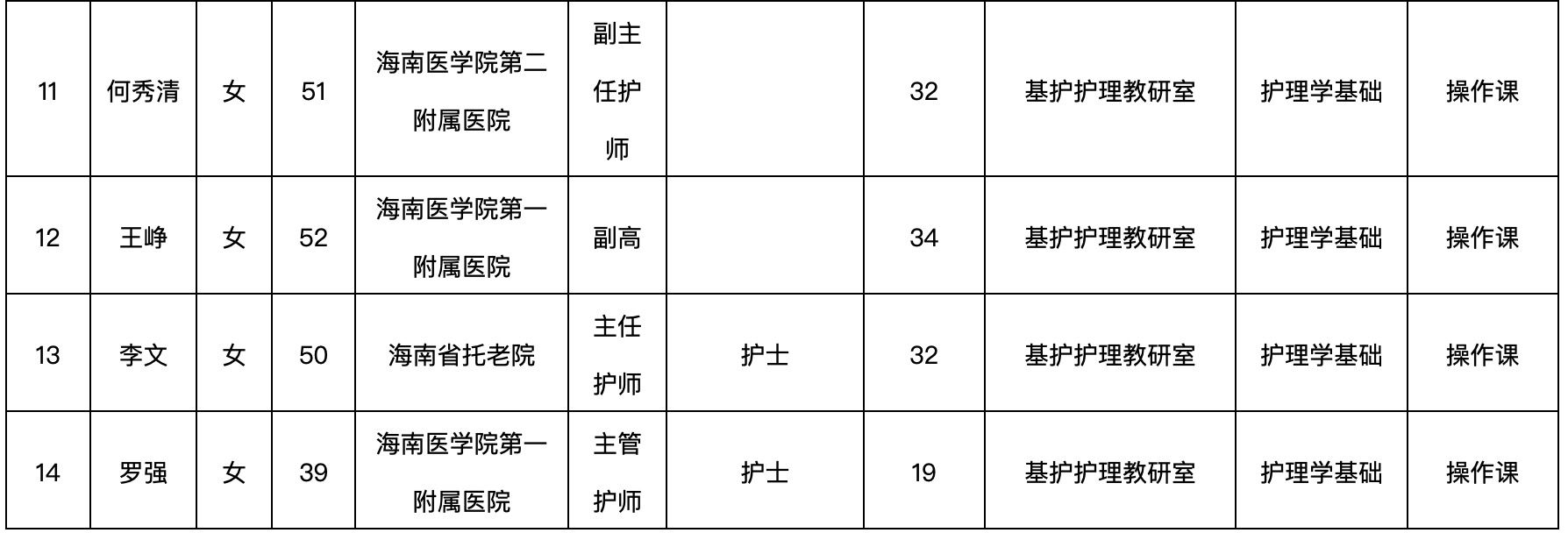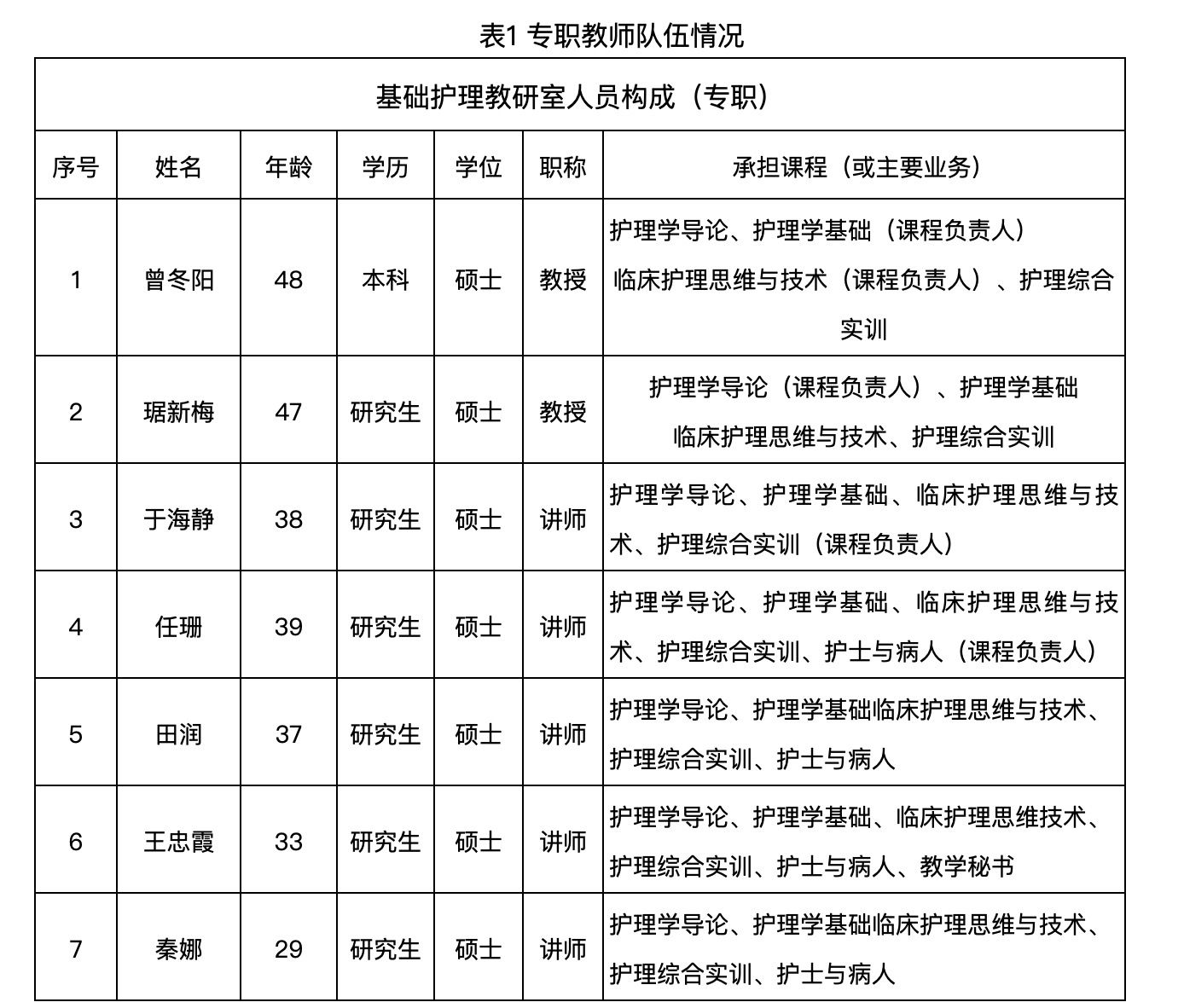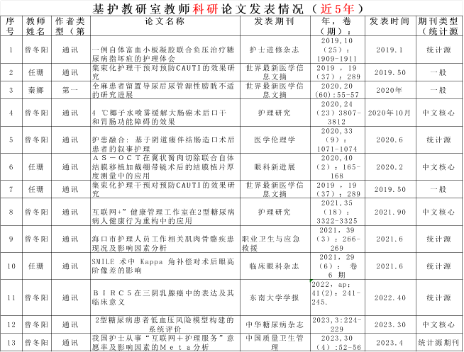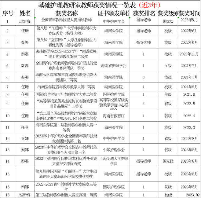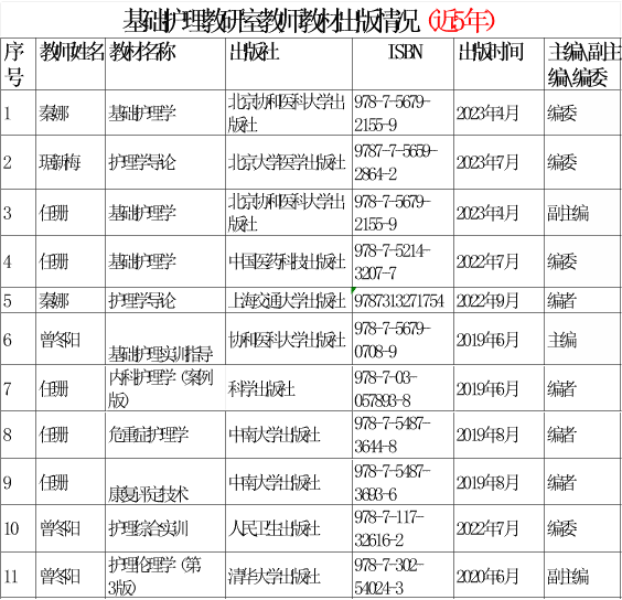 (1)2005年7月,基础护理教研室分拆成基础护理教研室和人文护理教研室
