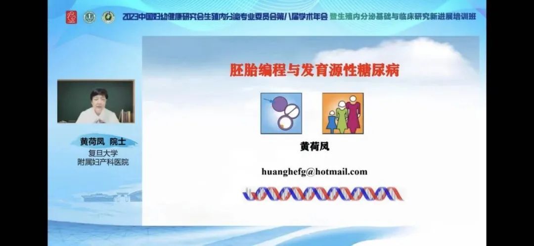 复旦大学附属妇产科医院黄荷凤院士带来了以“胚胎编程与发育源性糖尿病”为题的报告。首先,黄院士简述了妊娠期糖尿病(GDM)子代近期并发症和长期并发症,引出了“GDM血糖控制能否给子代带来长期的保护作用?”的问题。随后,黄院士通过展示实验设计和相关实验结果,得出GDM血糖控制能显著改善成年子代代谢异常,但GDM血糖控制后子代仍存在疾病易感性的实验结论。紧接着,黄院士介绍了FOAD理论,以及GDM与子代异常DNA甲基化修饰相关研究,引出了“GDM子代甲基化Profile?血糖控制能否改善子代异常的DNA甲基化修饰?”等问题。随后,黄院士展示了GDM治疗组多个基因的甲基化水平升高的实验结果。紧接着,黄院士通过相关实验数据,指出了高糖直接通过甲基化修饰改变相关基因表达的水平。最后,黄院士提出了早期干预GDM的临床思考,开启了发育源性疾病的临床源头防控新路径,并提出了源头防控慢病提高出生人口质量的展望。
