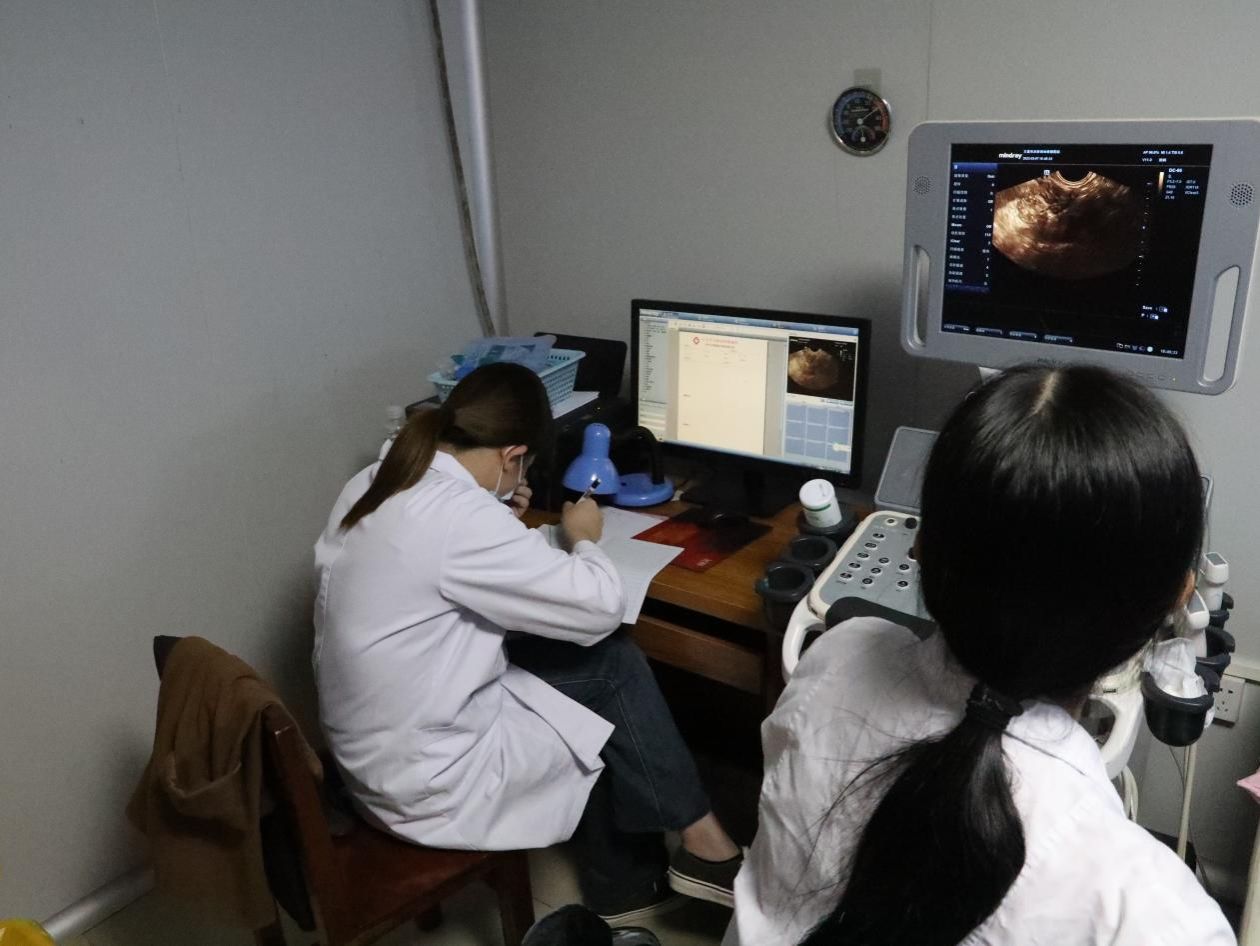 我院义诊团队现场为患者免费B超检查