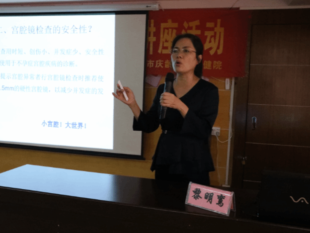 第一附属医院生殖医学中心病区负责人黎明鸾主任医师。同时黎明鸾主任开展了以“宫腔镜在不孕不育中的应用”为主题的专题讲座,将丰富的临床经验生动的展现给基层医务工作者,现场座无虚席。