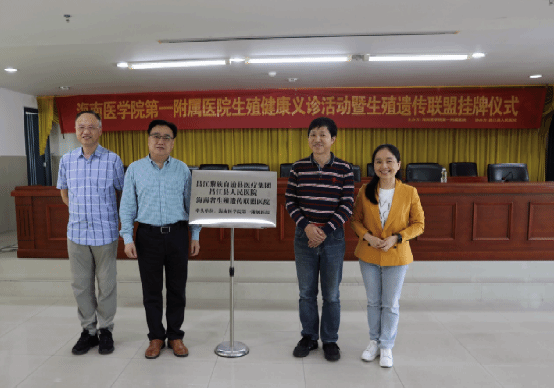 第一附属医院专家及昌江县人民医院的医护人员。仪式由昌江县人民医院党委书记赵海专主持,赵海专书记和黄元华副校长分别致辞,对海南省地方病(地中海贫血)临床医学研究中心昌江分中心的成立表示热烈祝贺。同时,由昌江县人民医院党委书记赵海专分别为黄元华副校长、马燕琳主任、黎明鸾主任、张毅主任颁发“生殖遗传联盟指导专家”聘书。