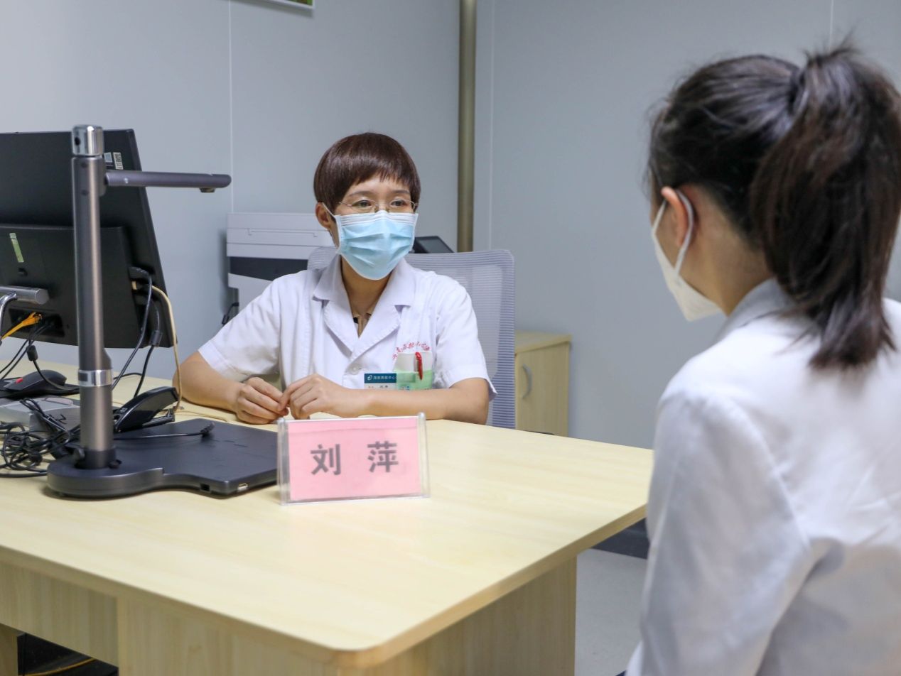 海南西部中心医院生殖科刘萍主任(左)义诊中