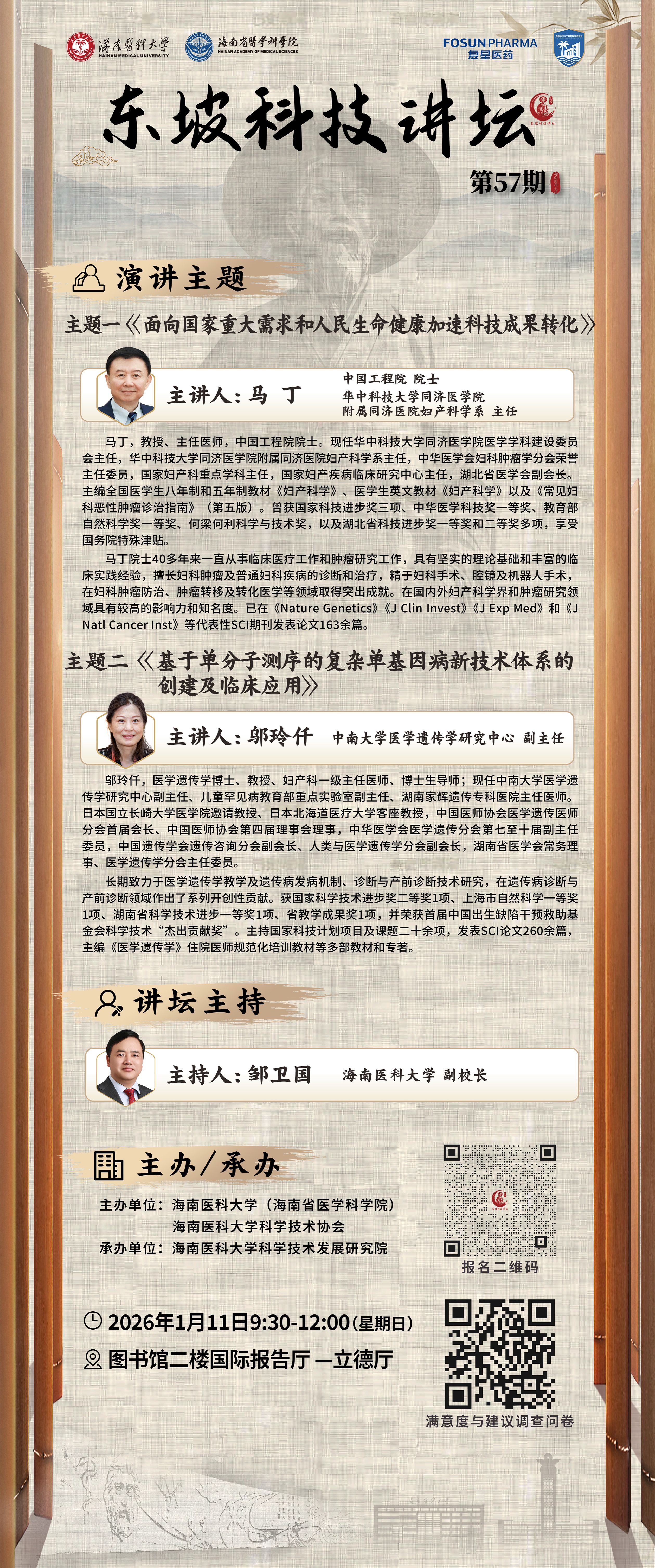 学术沙龙通知——东坡科技讲坛第57期生殖专场
