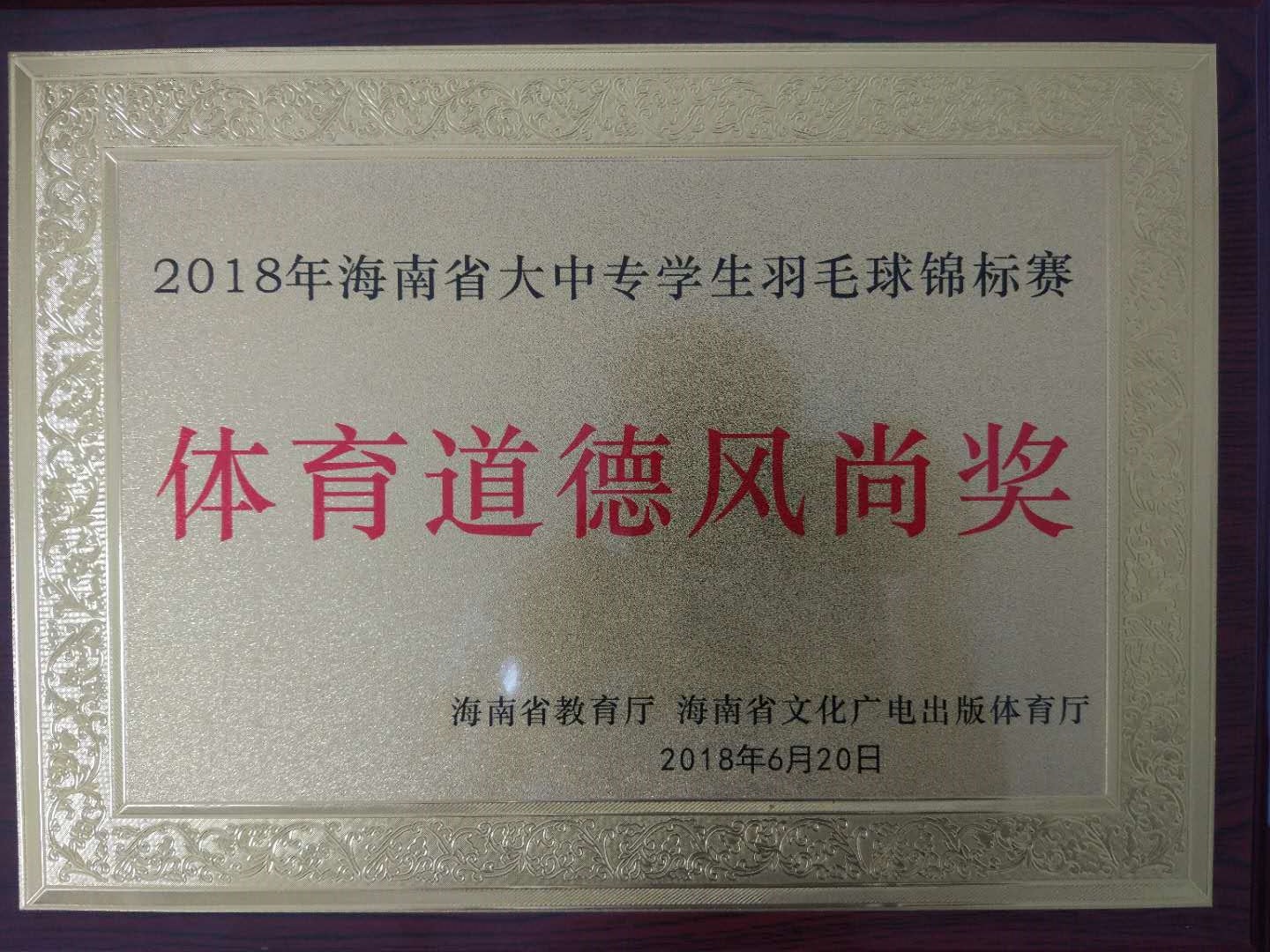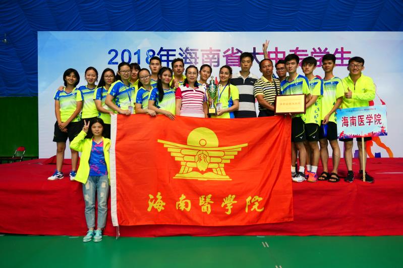 2018年海南省大中专学生羽毛球锦标赛于6月14-20日在文昌中学恒温羽毛球馆进行比赛,本次比赛在我校领队、教练员带领下,运动员们同心协力,团结拼搏,运动健儿们充分发挥“自强不息、团结向上、奋发有为”的海医精神,历经7天的顽强拼搏、过关斩将,夺取了混合团体冠军。同时庄燕苹、RIYA荣获女子双打第一名,邵尚祺荣获女子单打第二名,符荣茂荣获男子单打第三名,吴花桂荣获女子单打第三名,王童、羊逸磊荣获男子双打第四名,冼英钊、李祥惠荣获混合双打第四名,Amirkhan、孙水霞荣获混合双打第五名,以及我校代表队荣获“体育道德风尚奖”称号。