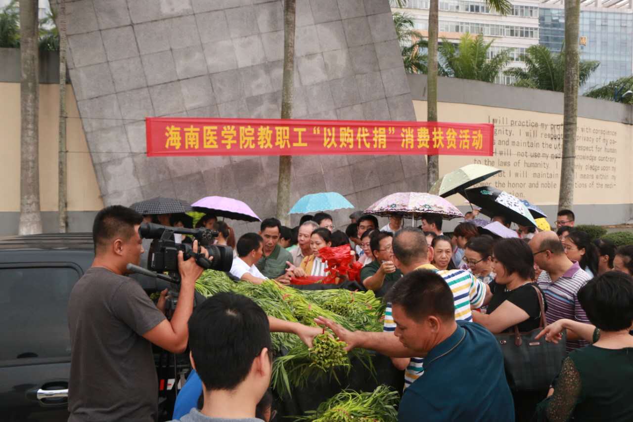 “好消息:全体教职员工,10月11日(今天)17:00左右,在学校医学卷轴广场,有我校对口扶贫点-乐东县抱由镇番豆村空心菜销售,每把1.5斤,售价3元。欢迎广大教职员工踊跃采购,为扶贫工作出点力,献上一份爱心。”这则消息刚在我校番豆村帮扶工作群与学校职工交易微信群中发布,便吸引了许多教职员工的关注:“外语部75把”“科技处35把”“菜来了没?”“怎么给钱?”