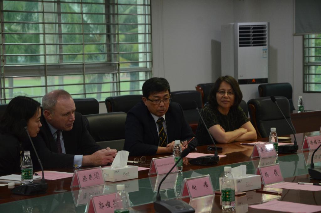 10月17日下午,美国哈佛大学Edward Thomas RYAN教授携美国中华医学基金会驻华首席代表李文凯博士、浙江大学徐福洁教授和翻译梁燕珺一行四人到访我校。杨俊校长携向伟副校长、科技处郭峻莉副处长、热带医学与检验学院常务副院长夏乾峰及外语部窦岩主任一行会见来宾,双方进行了座谈。