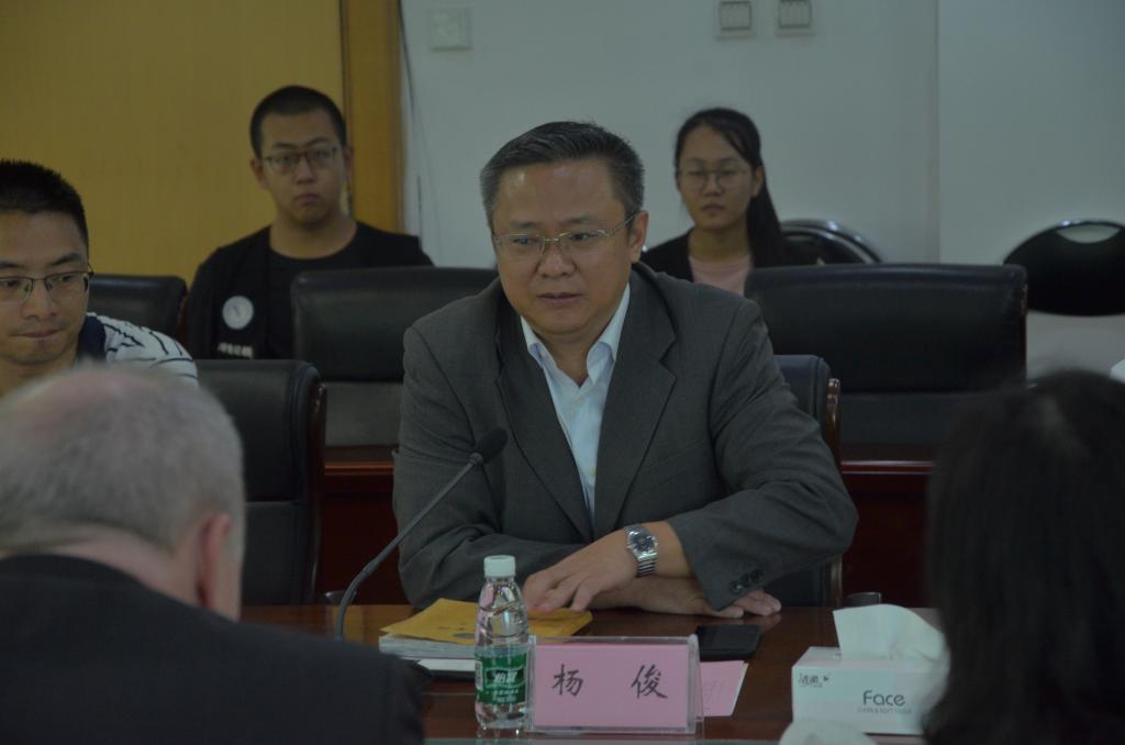 杨俊校长致词,对哈佛教授Edward Thomas RYAN一行的到来表示欢迎,并向来宾介绍了
